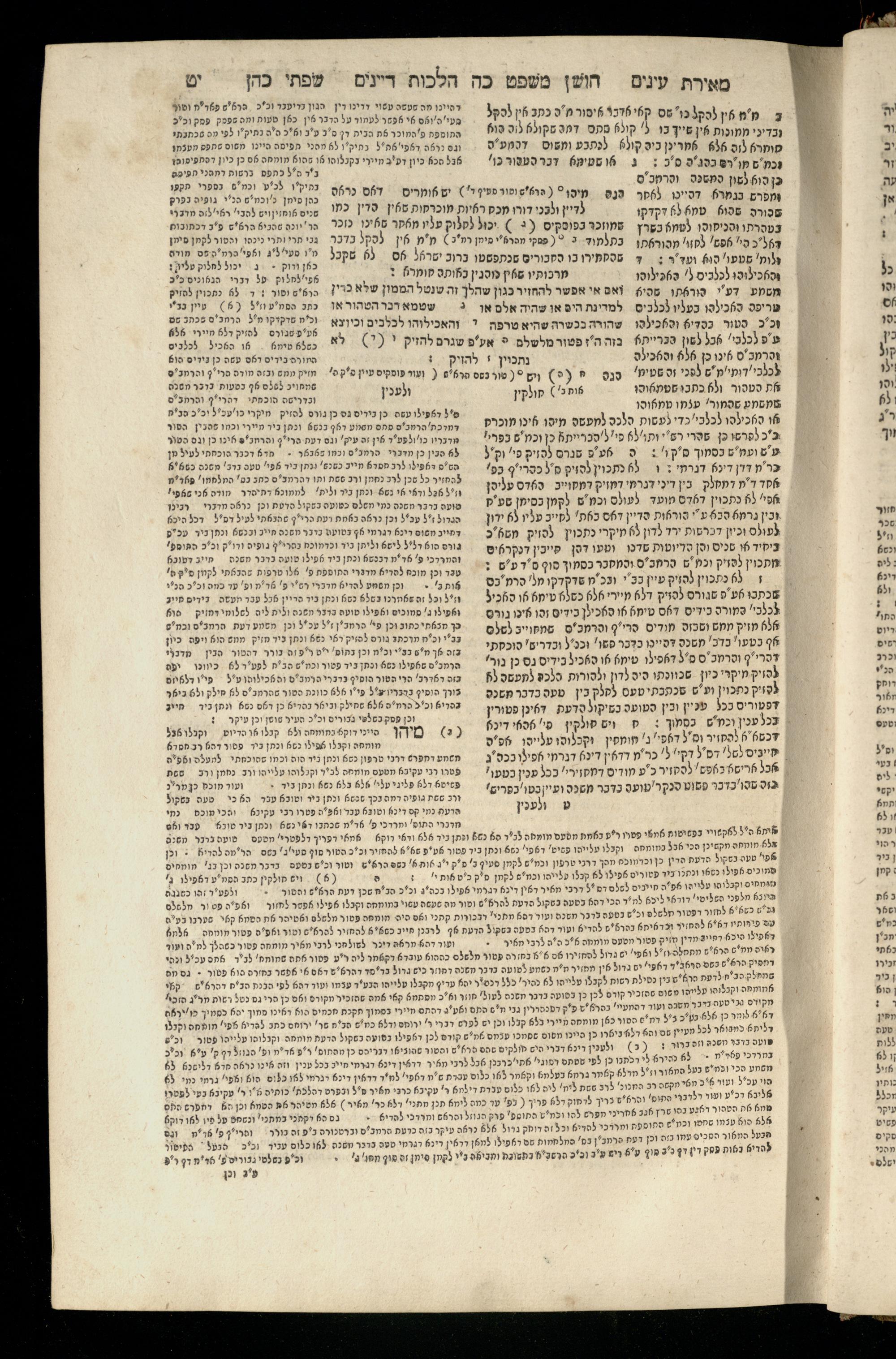 Sefer Torat kohanim : Shulḥan ʿarukh mi-ṭur Ḥoshen mishpaṭ : ʿim ha-beʾurim h.h. Meʾirat ʿenayim ṿe-Śifte kohen ; ... ṿe-hagahotaṿ ... Yosef Ḳaro z.l. ṿe-m.v.h.r.r. Mosheh Iserlez z.l. ...ספר תורת כהנים : שלחן ערוך מטור חשן משפט ; עם הביאורים ה״ה מאירת עינים ושפתי הכן ... והגהותיו מוהר״ר יוסף קארו ז״ל ומוהר״ר משה איסרלז ז״ל ...