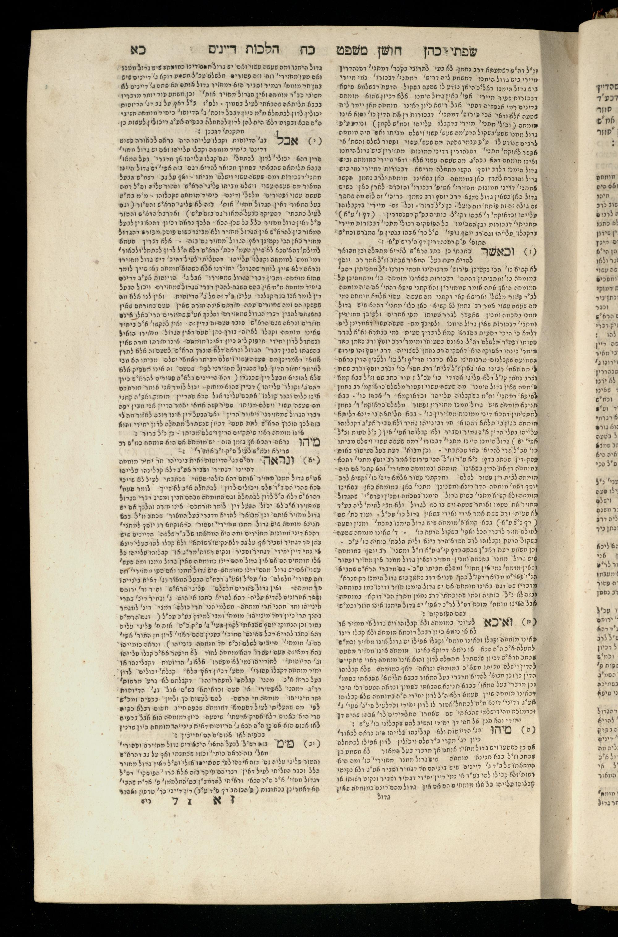 Sefer Torat kohanim : Shulḥan ʿarukh mi-ṭur Ḥoshen mishpaṭ : ʿim ha-beʾurim h.h. Meʾirat ʿenayim ṿe-Śifte kohen ; ... ṿe-hagahotaṿ ... Yosef Ḳaro z.l. ṿe-m.v.h.r.r. Mosheh Iserlez z.l. ...ספר תורת כהנים : שלחן ערוך מטור חשן משפט ; עם הביאורים ה״ה מאירת עינים ושפתי הכן ... והגהותיו מוהר״ר יוסף קארו ז״ל ומוהר״ר משה איסרלז ז״ל ...