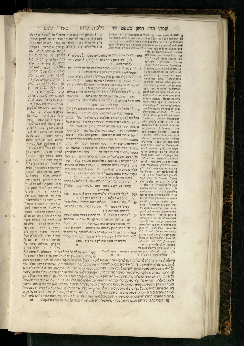 Sefer Torat kohanim : Shulḥan ʿarukh mi-ṭur Ḥoshen mishpaṭ : ʿim ha-beʾurim h.h. Meʾirat ʿenayim ṿe-Śifte kohen ; ... ṿe-hagahotaṿ ... Yosef Ḳaro z.l. ṿe-m.v.h.r.r. Mosheh Iserlez z.l. ...ספר תורת כהנים : שלחן ערוך מטור חשן משפט ; עם הביאורים ה״ה מאירת עינים ושפתי הכן ... והגהותיו מוהר״ר יוסף קארו ז״ל ומוהר״ר משה איסרלז ז״ל ...