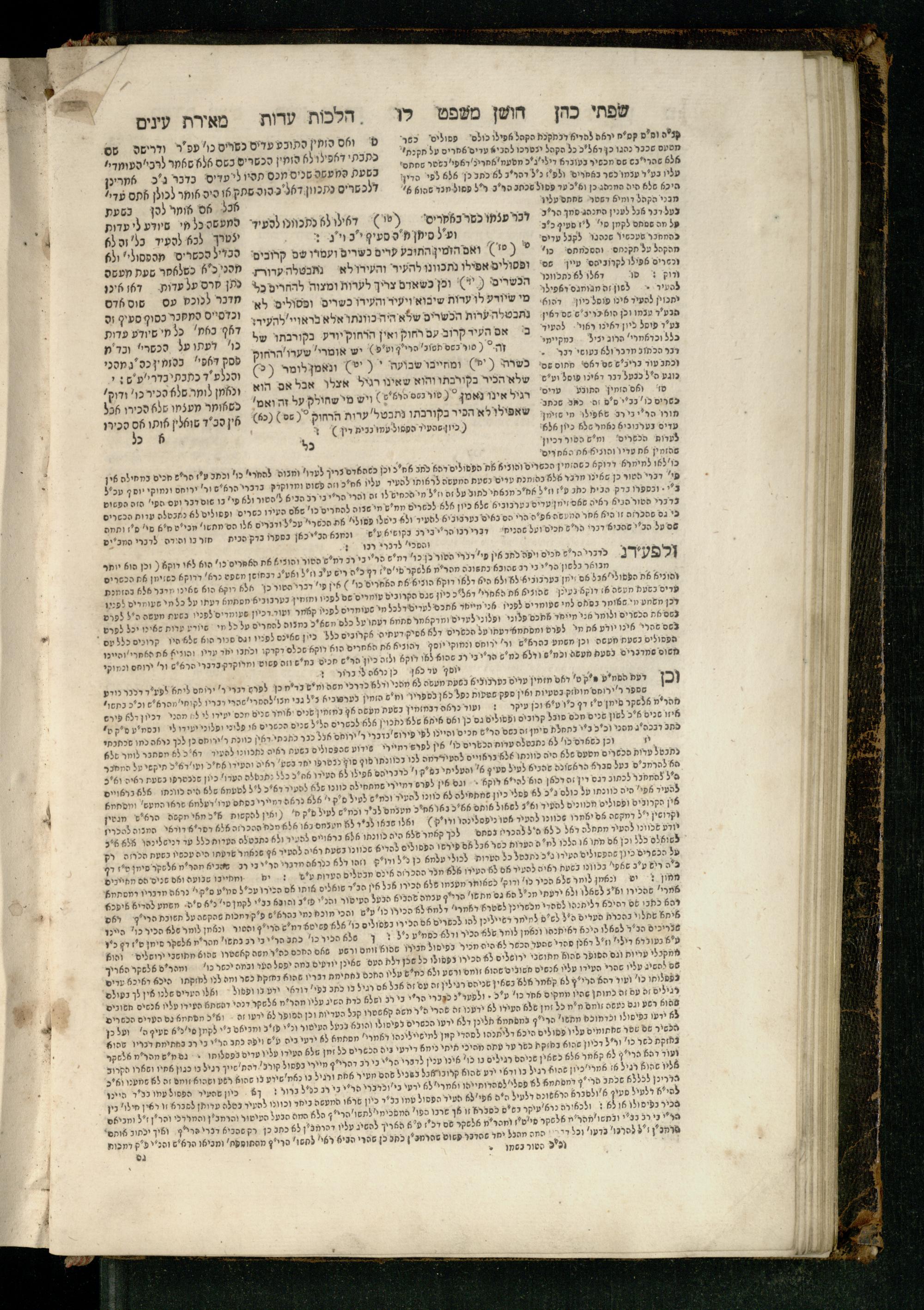 Sefer Torat kohanim : Shulḥan ʿarukh mi-ṭur Ḥoshen mishpaṭ : ʿim ha-beʾurim h.h. Meʾirat ʿenayim ṿe-Śifte kohen ; ... ṿe-hagahotaṿ ... Yosef Ḳaro z.l. ṿe-m.v.h.r.r. Mosheh Iserlez z.l. ...ספר תורת כהנים : שלחן ערוך מטור חשן משפט ; עם הביאורים ה״ה מאירת עינים ושפתי הכן ... והגהותיו מוהר״ר יוסף קארו ז״ל ומוהר״ר משה איסרלז ז״ל ...