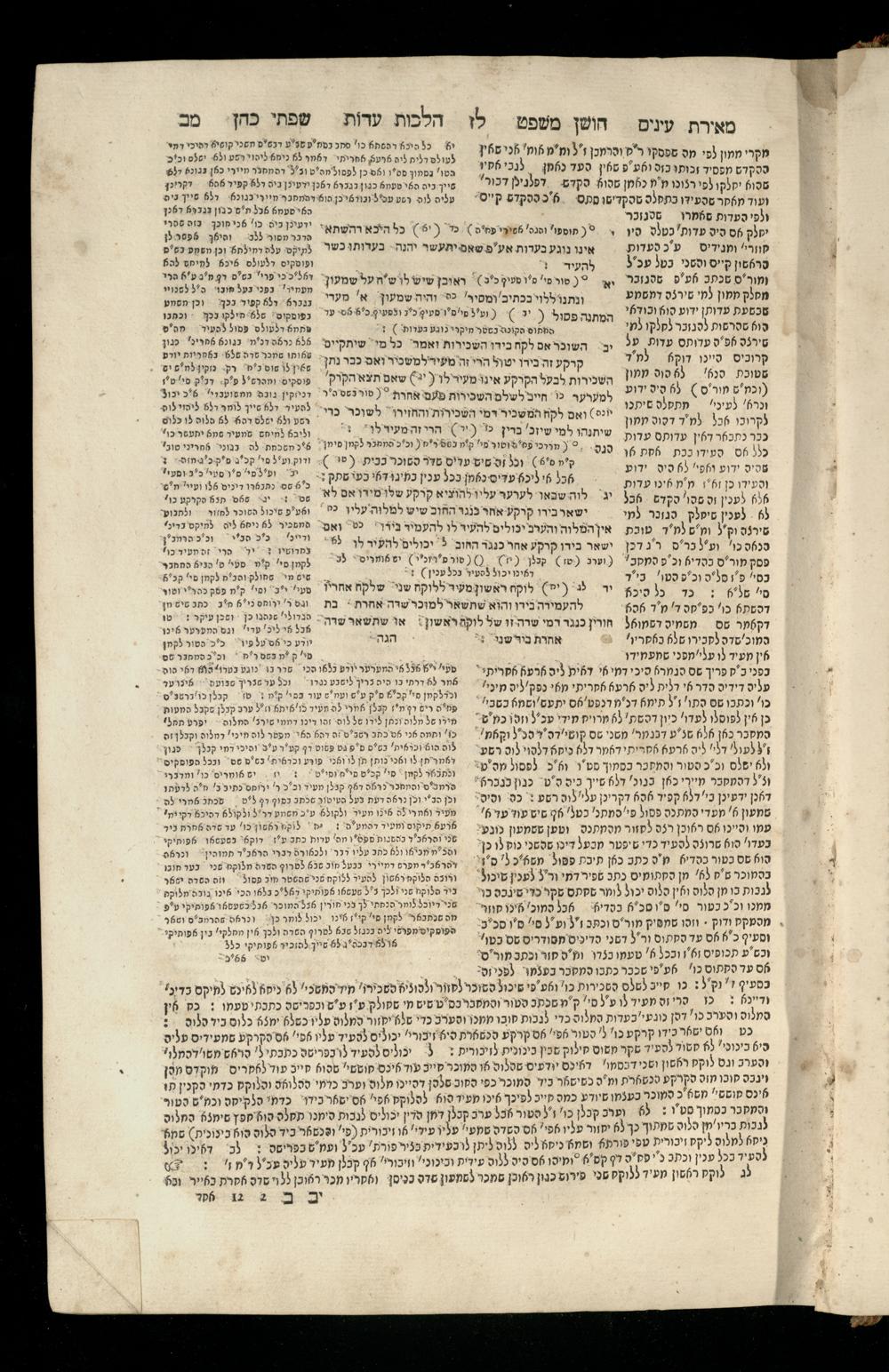 Sefer Torat kohanim : Shulḥan ʿarukh mi-ṭur Ḥoshen mishpaṭ : ʿim ha-beʾurim h.h. Meʾirat ʿenayim ṿe-Śifte kohen ; ... ṿe-hagahotaṿ ... Yosef Ḳaro z.l. ṿe-m.v.h.r.r. Mosheh Iserlez z.l. ...ספר תורת כהנים : שלחן ערוך מטור חשן משפט ; עם הביאורים ה״ה מאירת עינים ושפתי הכן ... והגהותיו מוהר״ר יוסף קארו ז״ל ומוהר״ר משה איסרלז ז״ל ...