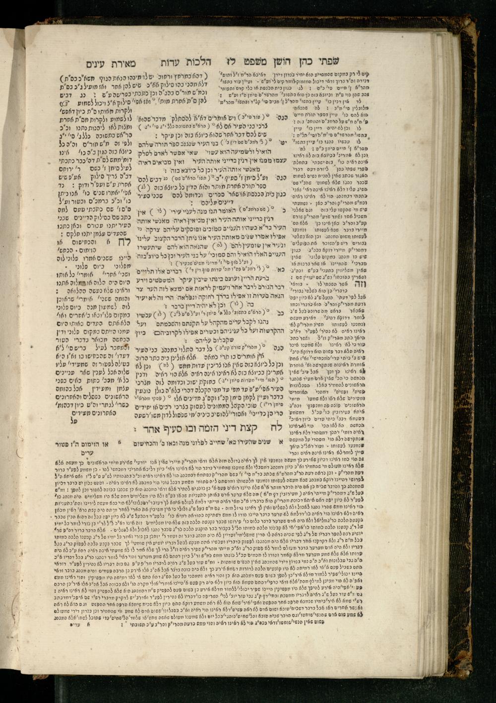 Sefer Torat kohanim : Shulḥan ʿarukh mi-ṭur Ḥoshen mishpaṭ : ʿim ha-beʾurim h.h. Meʾirat ʿenayim ṿe-Śifte kohen ; ... ṿe-hagahotaṿ ... Yosef Ḳaro z.l. ṿe-m.v.h.r.r. Mosheh Iserlez z.l. ...ספר תורת כהנים : שלחן ערוך מטור חשן משפט ; עם הביאורים ה״ה מאירת עינים ושפתי הכן ... והגהותיו מוהר״ר יוסף קארו ז״ל ומוהר״ר משה איסרלז ז״ל ...
