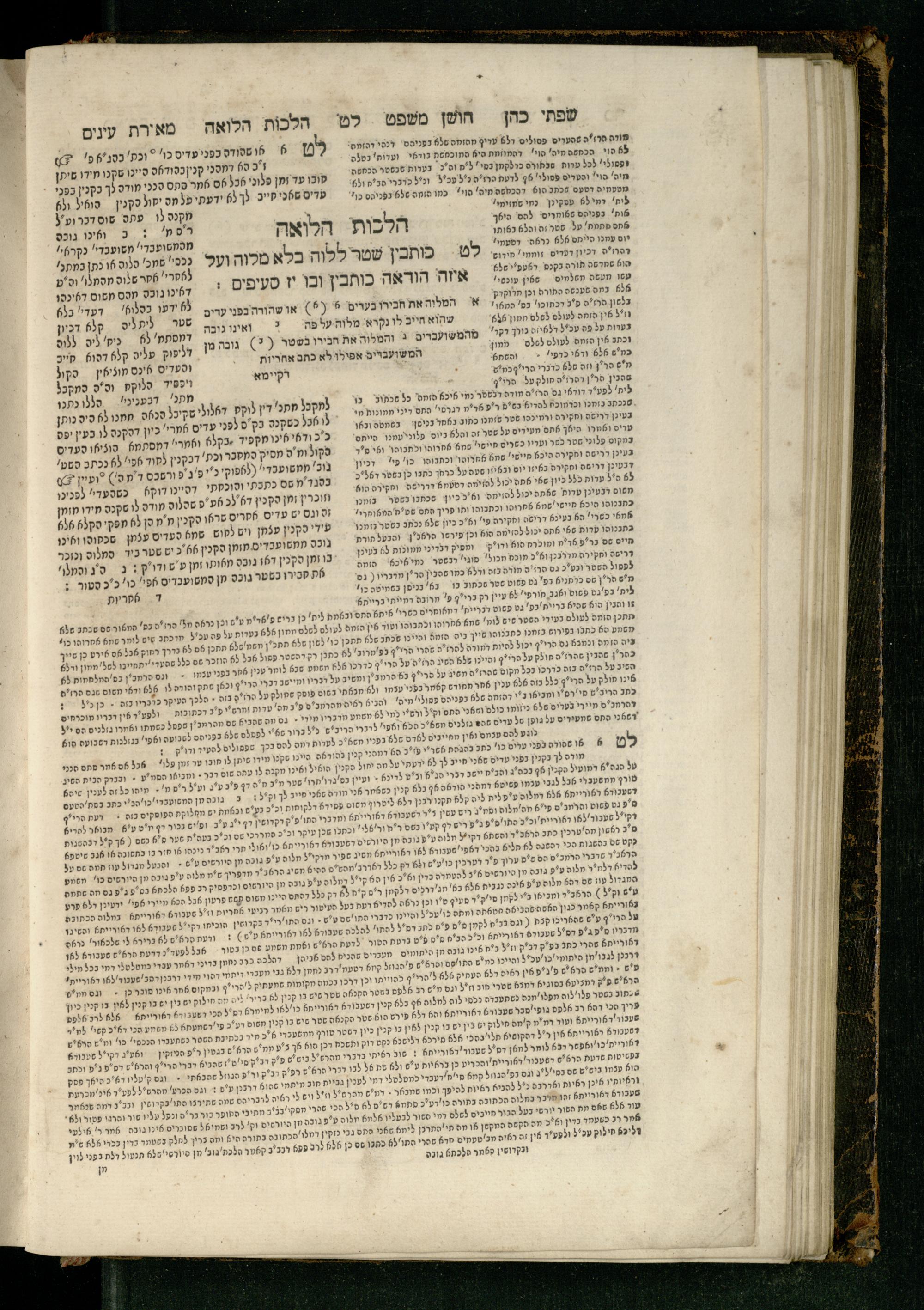 Sefer Torat kohanim : Shulḥan ʿarukh mi-ṭur Ḥoshen mishpaṭ : ʿim ha-beʾurim h.h. Meʾirat ʿenayim ṿe-Śifte kohen ; ... ṿe-hagahotaṿ ... Yosef Ḳaro z.l. ṿe-m.v.h.r.r. Mosheh Iserlez z.l. ...ספר תורת כהנים : שלחן ערוך מטור חשן משפט ; עם הביאורים ה״ה מאירת עינים ושפתי הכן ... והגהותיו מוהר״ר יוסף קארו ז״ל ומוהר״ר משה איסרלז ז״ל ...