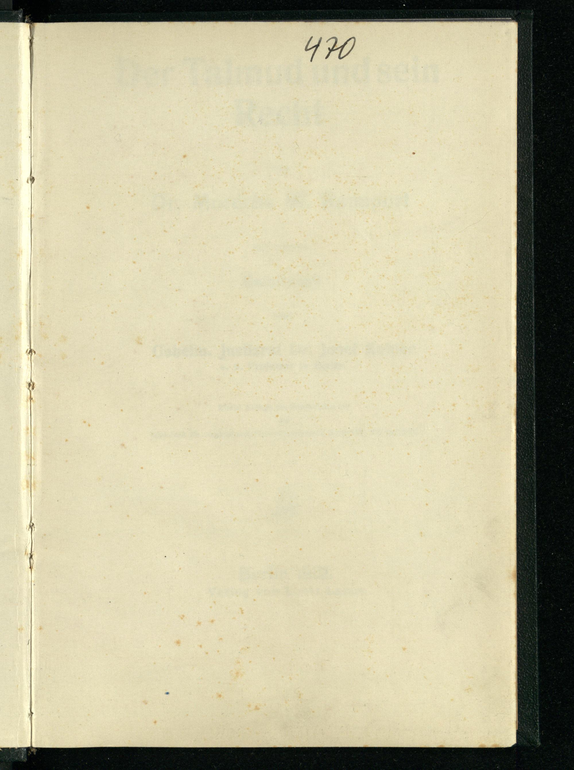 Der Talmud und sein Recht / von Mordché W. Rapaport ; mit einem Geleitw. von Josef Kohler