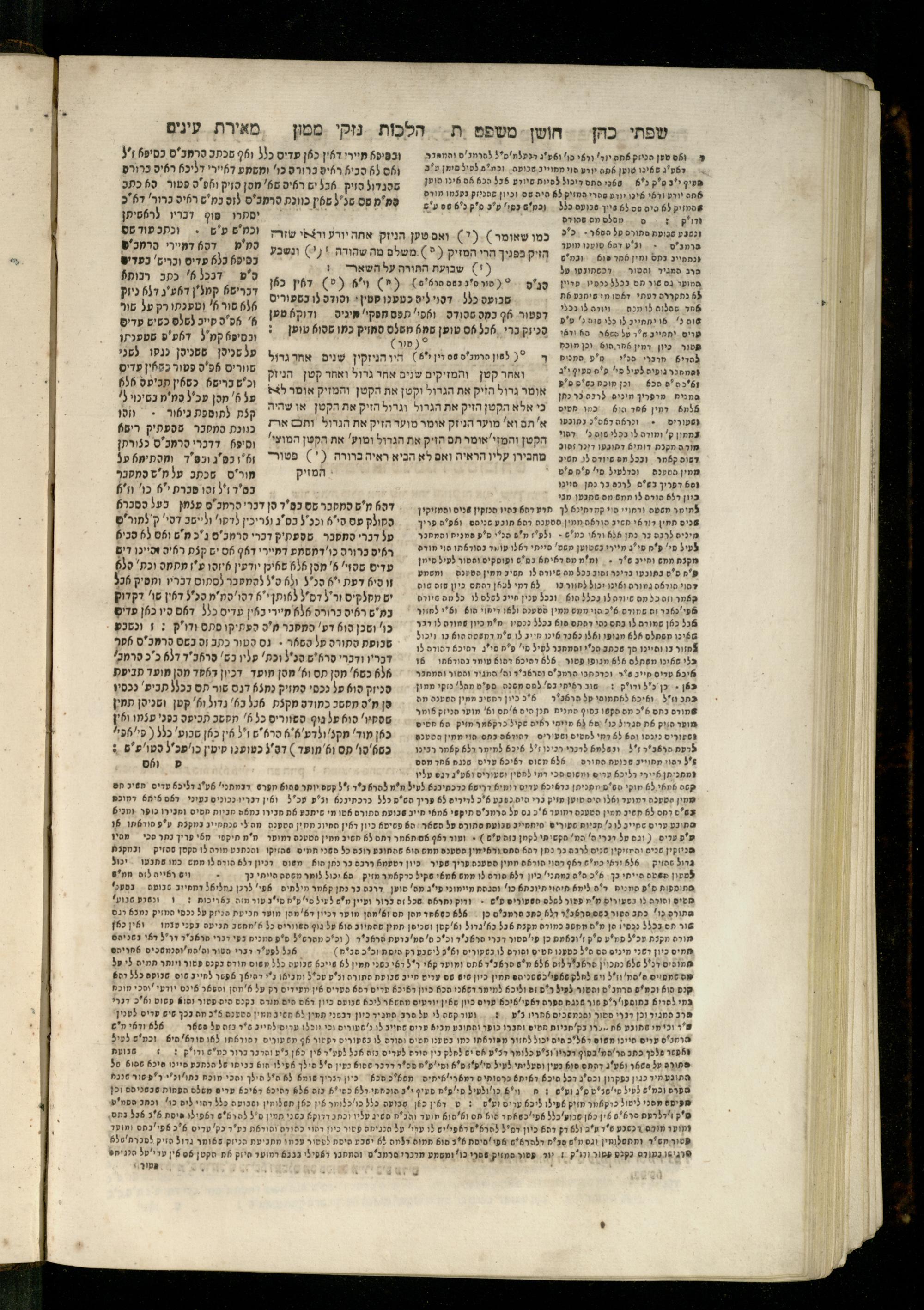Sefer Torat kohanim : Shulḥan ʿarukh mi-ṭur Ḥoshen mishpaṭ : ʿim ha-beʾurim h.h. Meʾirat ʿenayim ṿe-Śifte kohen ; ... ṿe-hagahotaṿ ... Yosef Ḳaro z.l. ṿe-m.v.h.r.r. Mosheh Iserlez z.l. ...ספר תורת כהנים : שלחן ערוך מטור חשן משפט ; עם הביאורים ה״ה מאירת עינים ושפתי הכן ... והגהותיו מוהר״ר יוסף קארו ז״ל ומוהר״ר משה איסרלז ז״ל ...