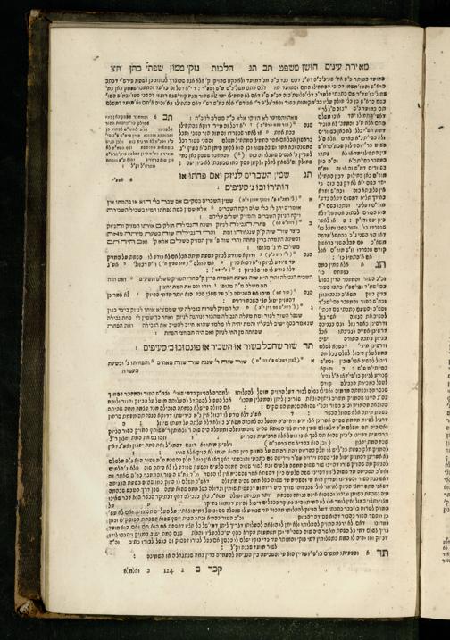 Sefer Torat kohanim : Shulḥan ʿarukh mi-ṭur Ḥoshen mishpaṭ : ʿim ha-beʾurim h.h. Meʾirat ʿenayim ṿe-Śifte kohen ; ... ṿe-hagahotaṿ ... Yosef Ḳaro z.l. ṿe-m.v.h.r.r. Mosheh Iserlez z.l. ...ספר תורת כהנים : שלחן ערוך מטור חשן משפט ; עם הביאורים ה״ה מאירת עינים ושפתי הכן ... והגהותיו מוהר״ר יוסף קארו ז״ל ומוהר״ר משה איסרלז ז״ל ...