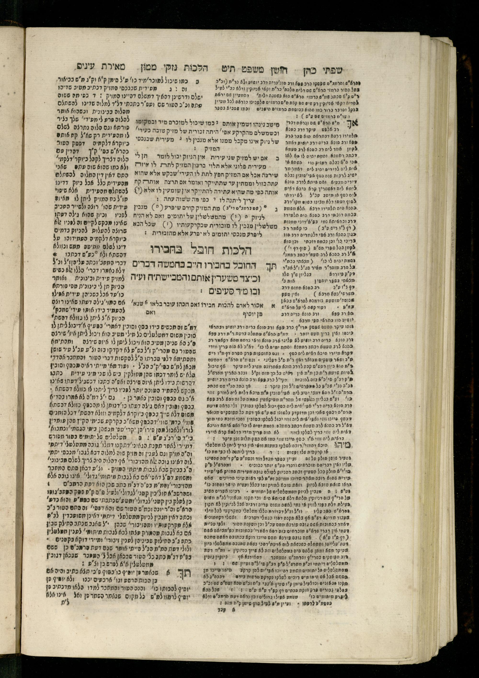 Sefer Torat kohanim : Shulḥan ʿarukh mi-ṭur Ḥoshen mishpaṭ : ʿim ha-beʾurim h.h. Meʾirat ʿenayim ṿe-Śifte kohen ; ... ṿe-hagahotaṿ ... Yosef Ḳaro z.l. ṿe-m.v.h.r.r. Mosheh Iserlez z.l. ...ספר תורת כהנים : שלחן ערוך מטור חשן משפט ; עם הביאורים ה״ה מאירת עינים ושפתי הכן ... והגהותיו מוהר״ר יוסף קארו ז״ל ומוהר״ר משה איסרלז ז״ל ...