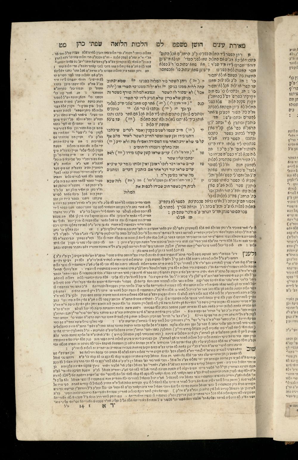 Sefer Torat kohanim : Shulḥan ʿarukh mi-ṭur Ḥoshen mishpaṭ : ʿim ha-beʾurim h.h. Meʾirat ʿenayim ṿe-Śifte kohen ; ... ṿe-hagahotaṿ ... Yosef Ḳaro z.l. ṿe-m.v.h.r.r. Mosheh Iserlez z.l. ...ספר תורת כהנים : שלחן ערוך מטור חשן משפט ; עם הביאורים ה״ה מאירת עינים ושפתי הכן ... והגהותיו מוהר״ר יוסף קארו ז״ל ומוהר״ר משה איסרלז ז״ל ...
