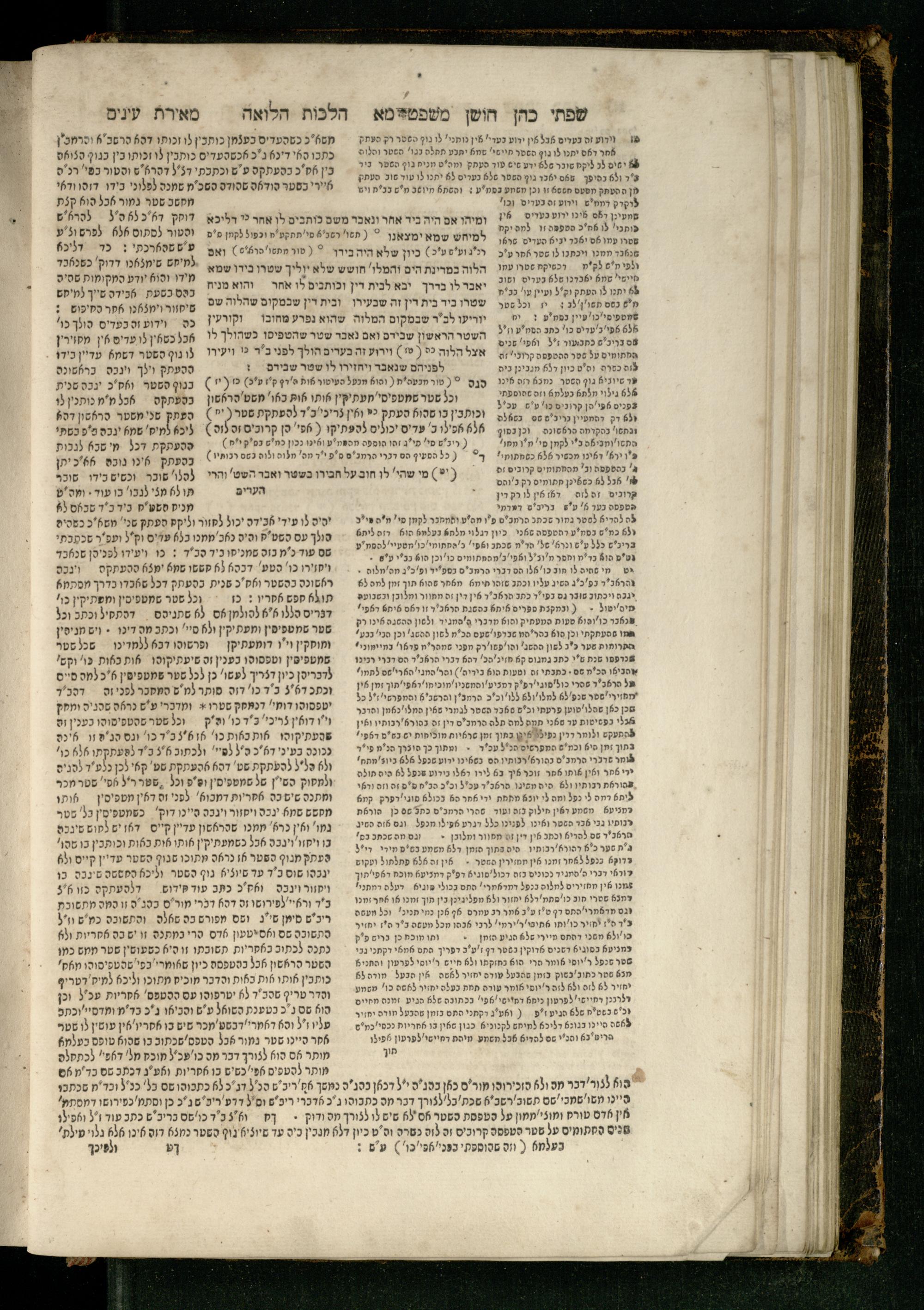 Sefer Torat kohanim : Shulḥan ʿarukh mi-ṭur Ḥoshen mishpaṭ : ʿim ha-beʾurim h.h. Meʾirat ʿenayim ṿe-Śifte kohen ; ... ṿe-hagahotaṿ ... Yosef Ḳaro z.l. ṿe-m.v.h.r.r. Mosheh Iserlez z.l. ...ספר תורת כהנים : שלחן ערוך מטור חשן משפט ; עם הביאורים ה״ה מאירת עינים ושפתי הכן ... והגהותיו מוהר״ר יוסף קארו ז״ל ומוהר״ר משה איסרלז ז״ל ...