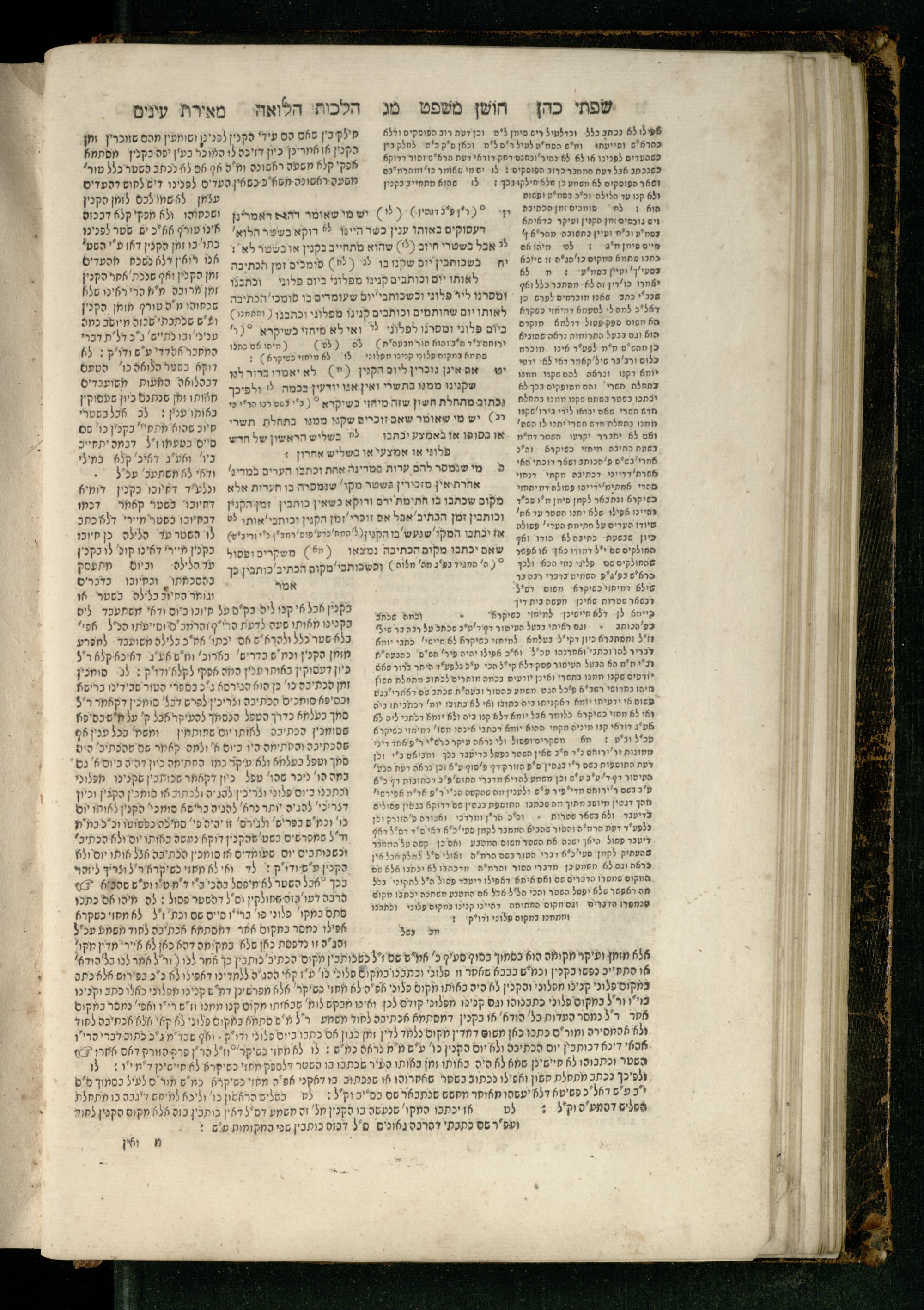 Sefer Torat kohanim : Shulḥan ʿarukh mi-ṭur Ḥoshen mishpaṭ : ʿim ha-beʾurim h.h. Meʾirat ʿenayim ṿe-Śifte kohen ; ... ṿe-hagahotaṿ ... Yosef Ḳaro z.l. ṿe-m.v.h.r.r. Mosheh Iserlez z.l. ...ספר תורת כהנים : שלחן ערוך מטור חשן משפט ; עם הביאורים ה״ה מאירת עינים ושפתי הכן ... והגהותיו מוהר״ר יוסף קארו ז״ל ומוהר״ר משה איסרלז ז״ל ...