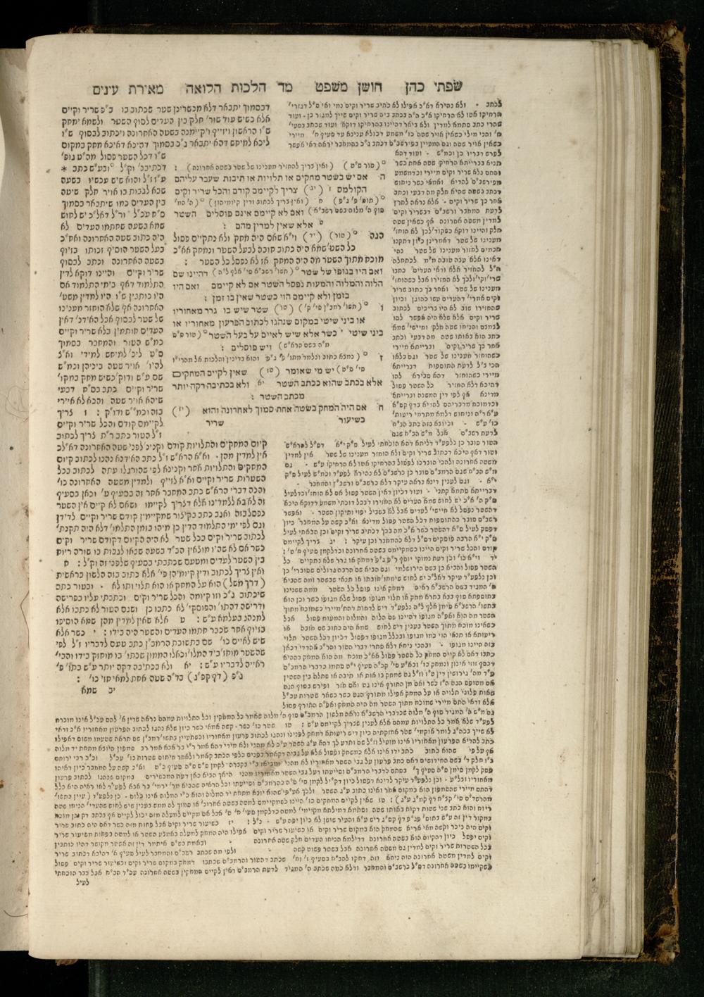 Sefer Torat kohanim : Shulḥan ʿarukh mi-ṭur Ḥoshen mishpaṭ : ʿim ha-beʾurim h.h. Meʾirat ʿenayim ṿe-Śifte kohen ; ... ṿe-hagahotaṿ ... Yosef Ḳaro z.l. ṿe-m.v.h.r.r. Mosheh Iserlez z.l. ...ספר תורת כהנים : שלחן ערוך מטור חשן משפט ; עם הביאורים ה״ה מאירת עינים ושפתי הכן ... והגהותיו מוהר״ר יוסף קארו ז״ל ומוהר״ר משה איסרלז ז״ל ...