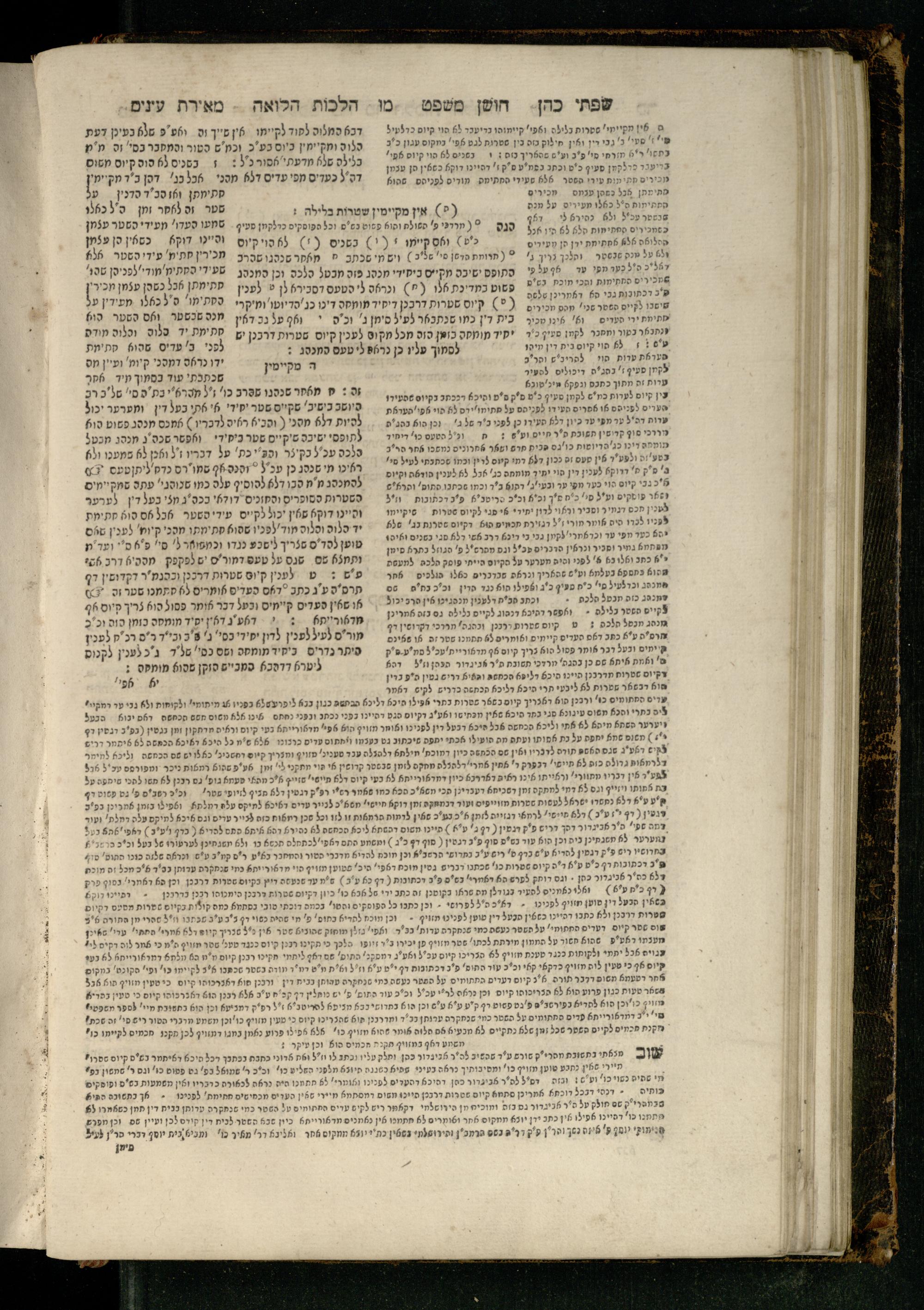 Sefer Torat kohanim : Shulḥan ʿarukh mi-ṭur Ḥoshen mishpaṭ : ʿim ha-beʾurim h.h. Meʾirat ʿenayim ṿe-Śifte kohen ; ... ṿe-hagahotaṿ ... Yosef Ḳaro z.l. ṿe-m.v.h.r.r. Mosheh Iserlez z.l. ...ספר תורת כהנים : שלחן ערוך מטור חשן משפט ; עם הביאורים ה״ה מאירת עינים ושפתי הכן ... והגהותיו מוהר״ר יוסף קארו ז״ל ומוהר״ר משה איסרלז ז״ל ...