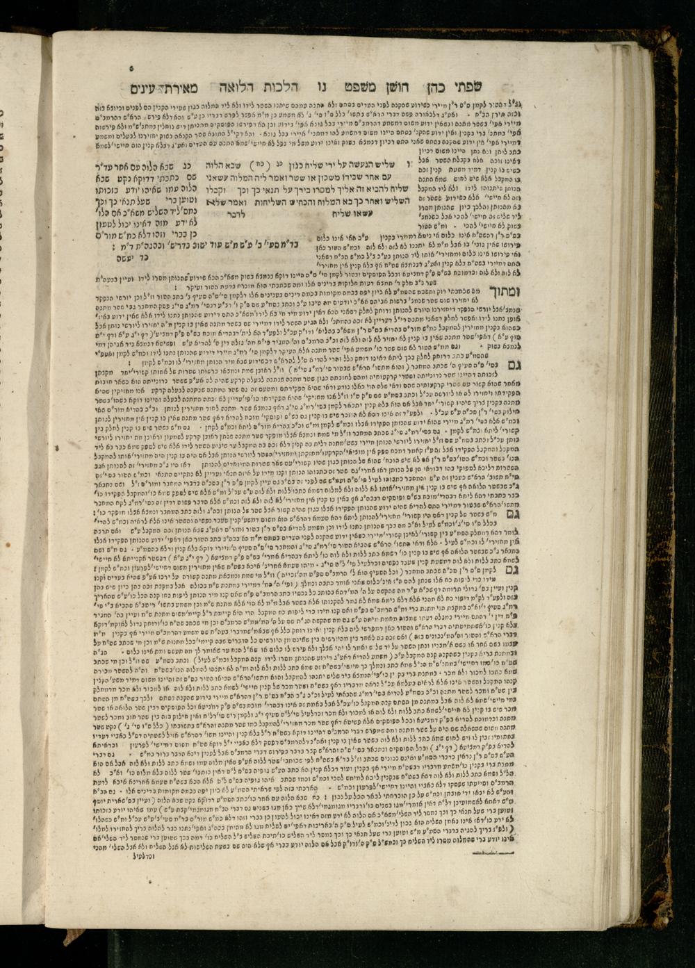 Sefer Torat kohanim : Shulḥan ʿarukh mi-ṭur Ḥoshen mishpaṭ : ʿim ha-beʾurim h.h. Meʾirat ʿenayim ṿe-Śifte kohen ; ... ṿe-hagahotaṿ ... Yosef Ḳaro z.l. ṿe-m.v.h.r.r. Mosheh Iserlez z.l. ...ספר תורת כהנים : שלחן ערוך מטור חשן משפט ; עם הביאורים ה״ה מאירת עינים ושפתי הכן ... והגהותיו מוהר״ר יוסף קארו ז״ל ומוהר״ר משה איסרלז ז״ל ...