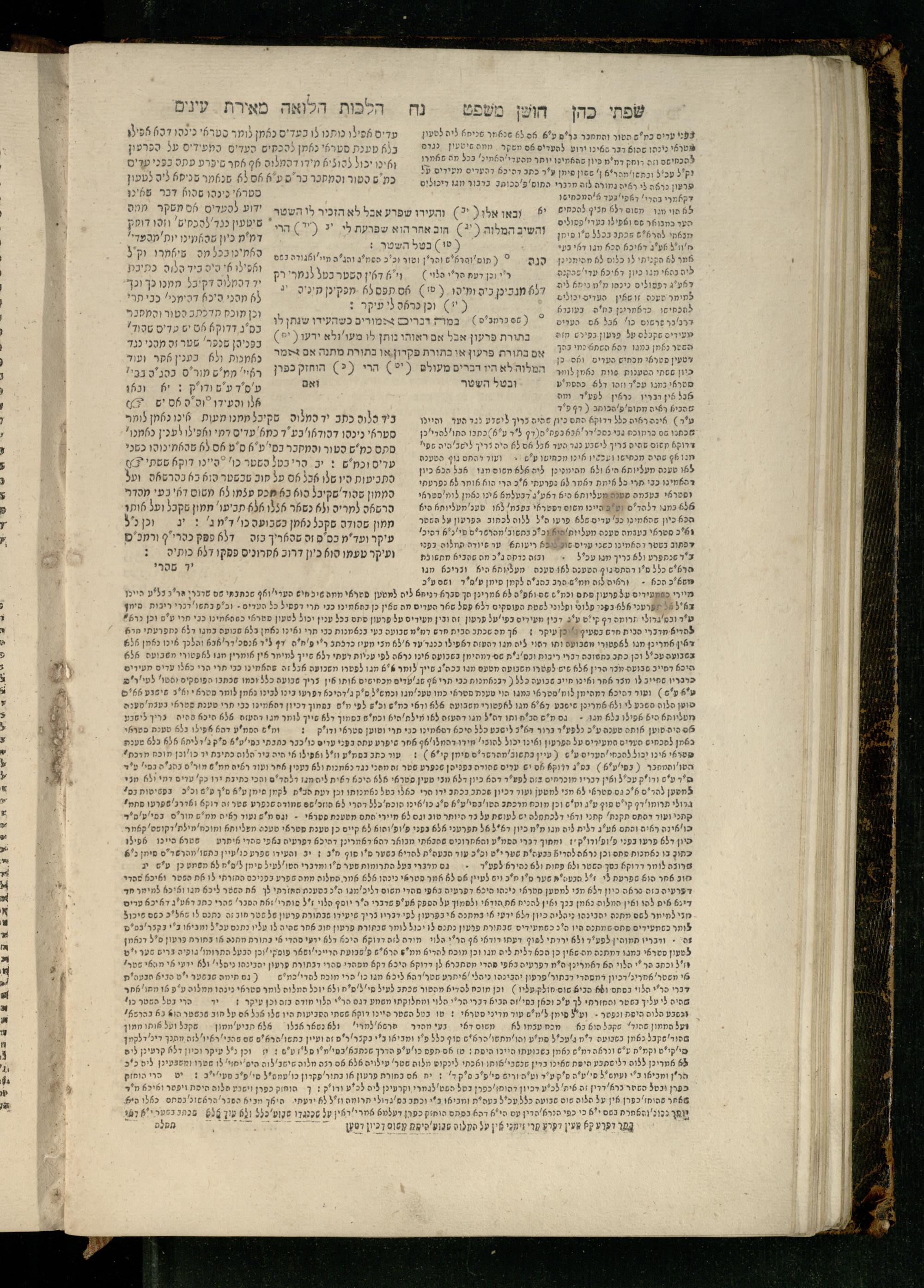 Sefer Torat kohanim : Shulḥan ʿarukh mi-ṭur Ḥoshen mishpaṭ : ʿim ha-beʾurim h.h. Meʾirat ʿenayim ṿe-Śifte kohen ; ... ṿe-hagahotaṿ ... Yosef Ḳaro z.l. ṿe-m.v.h.r.r. Mosheh Iserlez z.l. ...ספר תורת כהנים : שלחן ערוך מטור חשן משפט ; עם הביאורים ה״ה מאירת עינים ושפתי הכן ... והגהותיו מוהר״ר יוסף קארו ז״ל ומוהר״ר משה איסרלז ז״ל ...