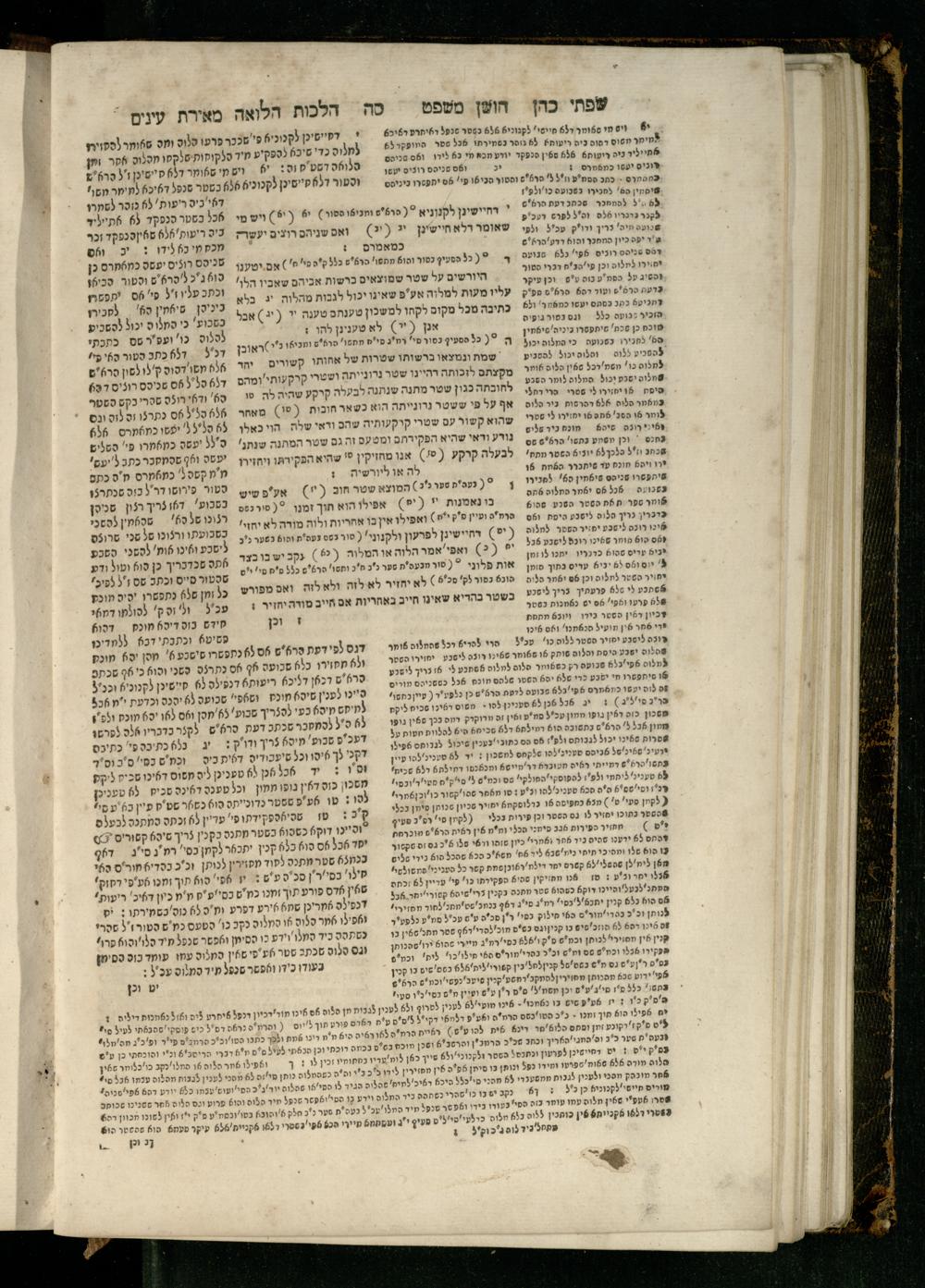 Sefer Torat kohanim : Shulḥan ʿarukh mi-ṭur Ḥoshen mishpaṭ : ʿim ha-beʾurim h.h. Meʾirat ʿenayim ṿe-Śifte kohen ; ... ṿe-hagahotaṿ ... Yosef Ḳaro z.l. ṿe-m.v.h.r.r. Mosheh Iserlez z.l. ...ספר תורת כהנים : שלחן ערוך מטור חשן משפט ; עם הביאורים ה״ה מאירת עינים ושפתי הכן ... והגהותיו מוהר״ר יוסף קארו ז״ל ומוהר״ר משה איסרלז ז״ל ...