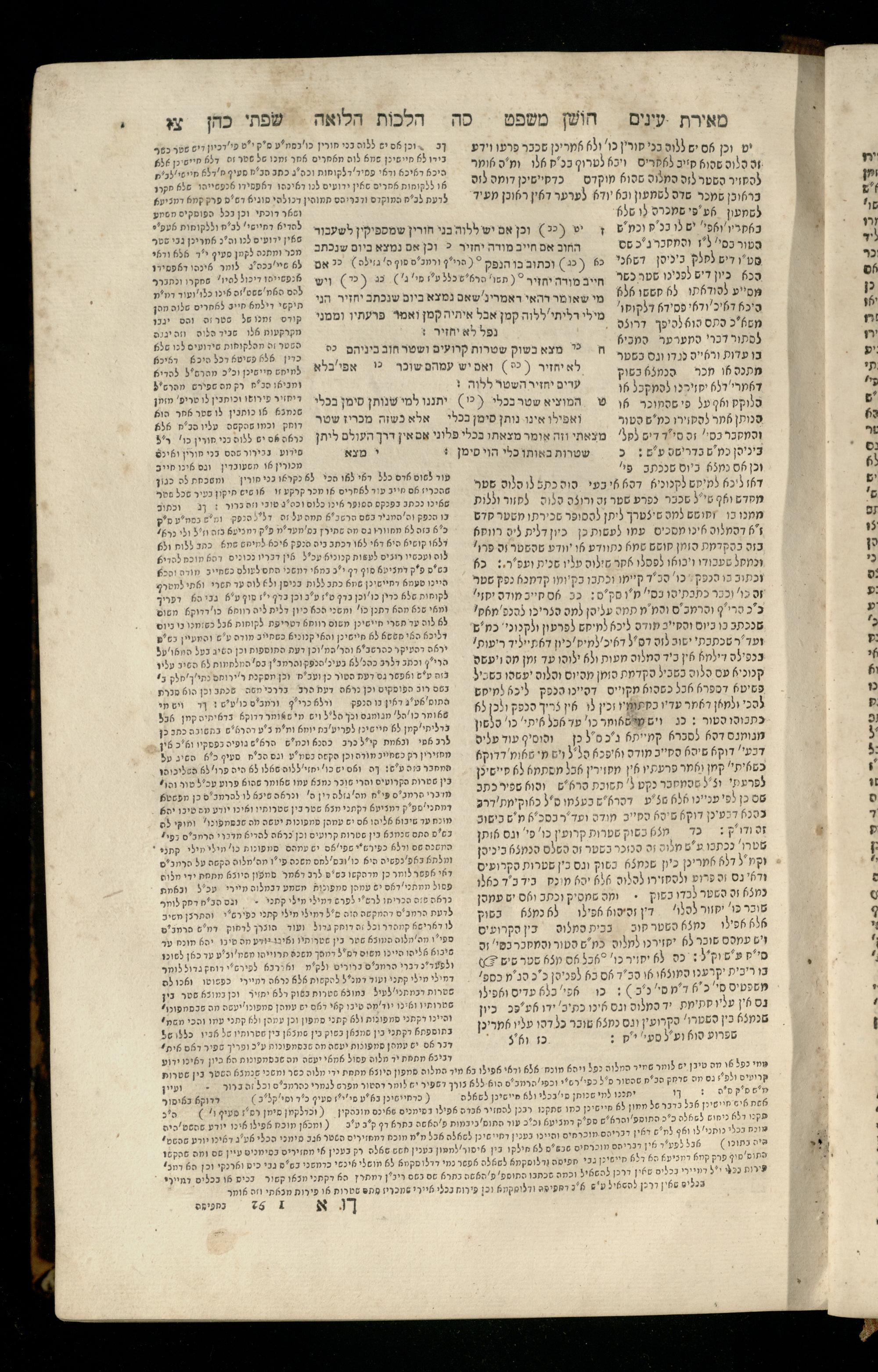 Sefer Torat kohanim : Shulḥan ʿarukh mi-ṭur Ḥoshen mishpaṭ : ʿim ha-beʾurim h.h. Meʾirat ʿenayim ṿe-Śifte kohen ; ... ṿe-hagahotaṿ ... Yosef Ḳaro z.l. ṿe-m.v.h.r.r. Mosheh Iserlez z.l. ...ספר תורת כהנים : שלחן ערוך מטור חשן משפט ; עם הביאורים ה״ה מאירת עינים ושפתי הכן ... והגהותיו מוהר״ר יוסף קארו ז״ל ומוהר״ר משה איסרלז ז״ל ...