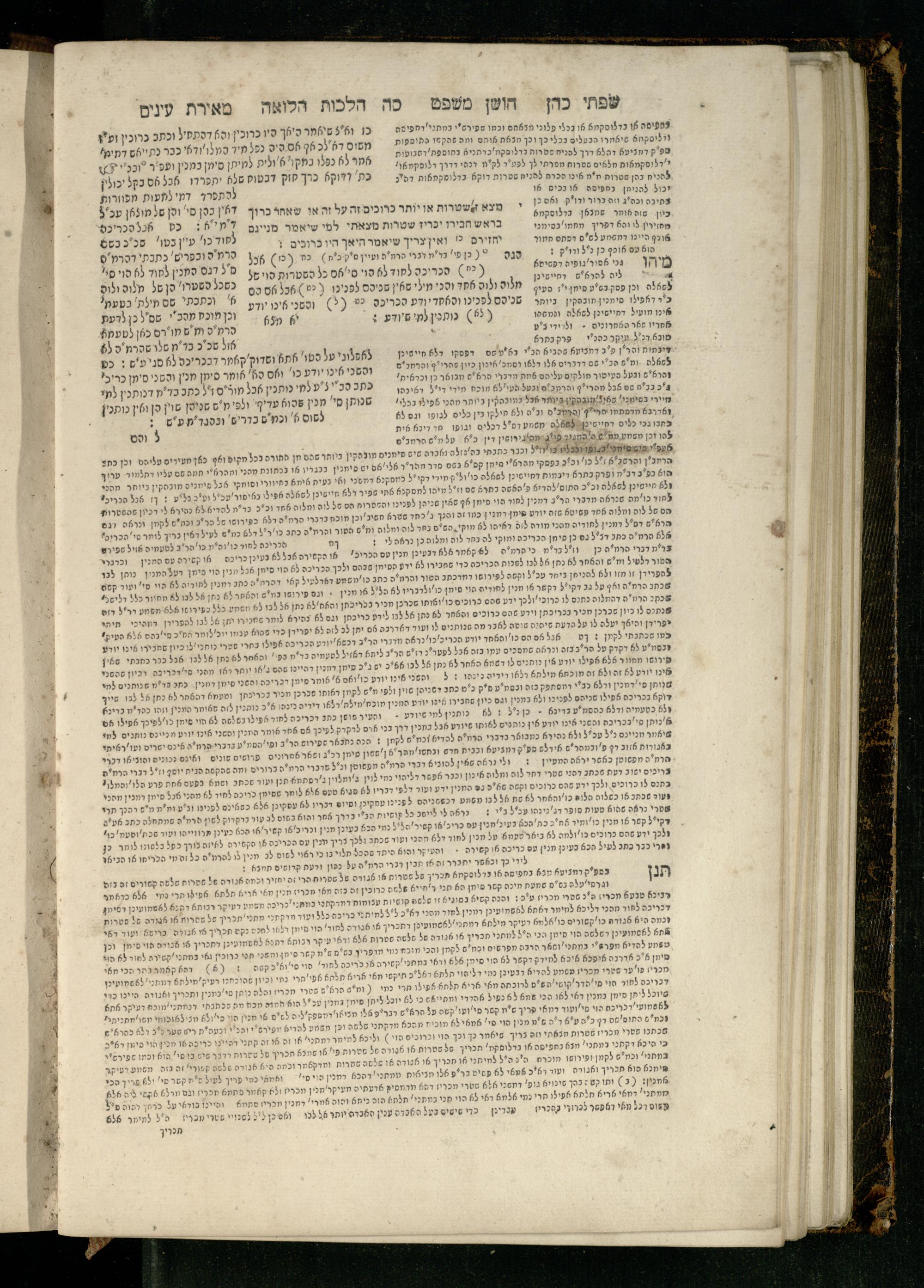 Sefer Torat kohanim : Shulḥan ʿarukh mi-ṭur Ḥoshen mishpaṭ : ʿim ha-beʾurim h.h. Meʾirat ʿenayim ṿe-Śifte kohen ; ... ṿe-hagahotaṿ ... Yosef Ḳaro z.l. ṿe-m.v.h.r.r. Mosheh Iserlez z.l. ...ספר תורת כהנים : שלחן ערוך מטור חשן משפט ; עם הביאורים ה״ה מאירת עינים ושפתי הכן ... והגהותיו מוהר״ר יוסף קארו ז״ל ומוהר״ר משה איסרלז ז״ל ...