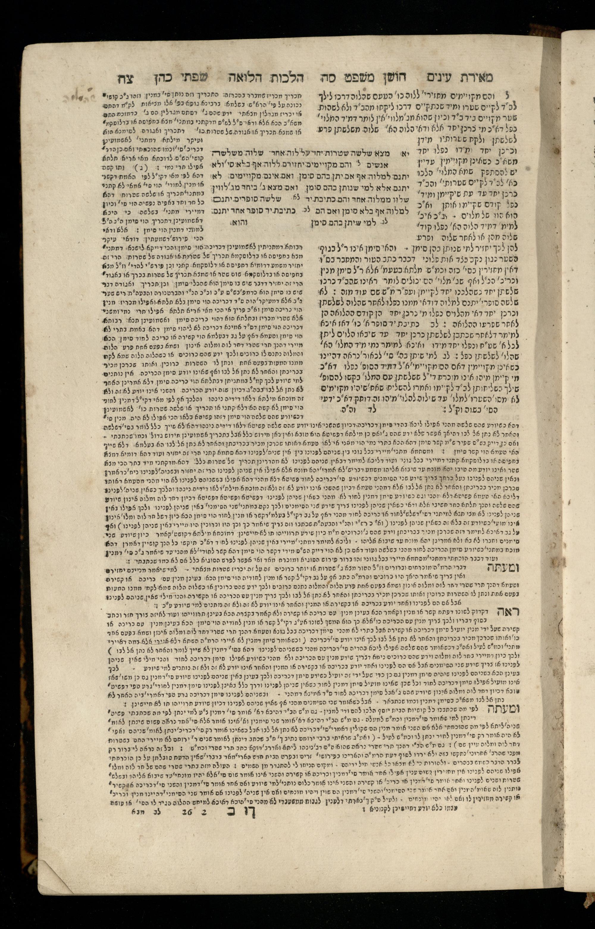 Sefer Torat kohanim : Shulḥan ʿarukh mi-ṭur Ḥoshen mishpaṭ : ʿim ha-beʾurim h.h. Meʾirat ʿenayim ṿe-Śifte kohen ; ... ṿe-hagahotaṿ ... Yosef Ḳaro z.l. ṿe-m.v.h.r.r. Mosheh Iserlez z.l. ...ספר תורת כהנים : שלחן ערוך מטור חשן משפט ; עם הביאורים ה״ה מאירת עינים ושפתי הכן ... והגהותיו מוהר״ר יוסף קארו ז״ל ומוהר״ר משה איסרלז ז״ל ...