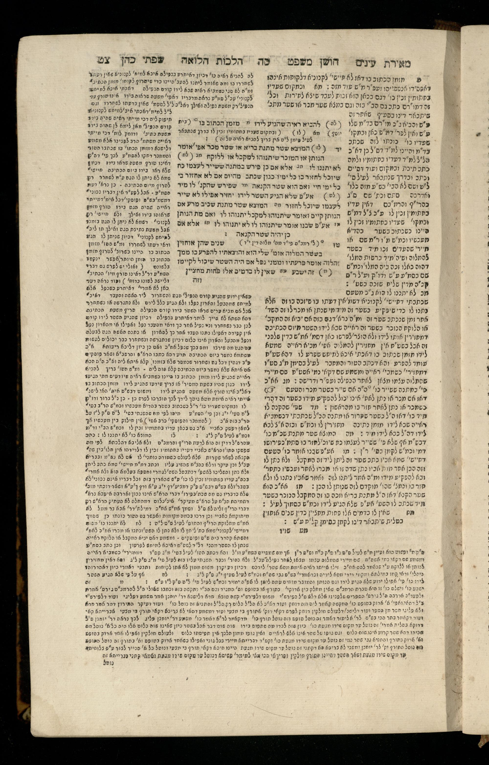 Sefer Torat kohanim : Shulḥan ʿarukh mi-ṭur Ḥoshen mishpaṭ : ʿim ha-beʾurim h.h. Meʾirat ʿenayim ṿe-Śifte kohen ; ... ṿe-hagahotaṿ ... Yosef Ḳaro z.l. ṿe-m.v.h.r.r. Mosheh Iserlez z.l. ...ספר תורת כהנים : שלחן ערוך מטור חשן משפט ; עם הביאורים ה״ה מאירת עינים ושפתי הכן ... והגהותיו מוהר״ר יוסף קארו ז״ל ומוהר״ר משה איסרלז ז״ל ...