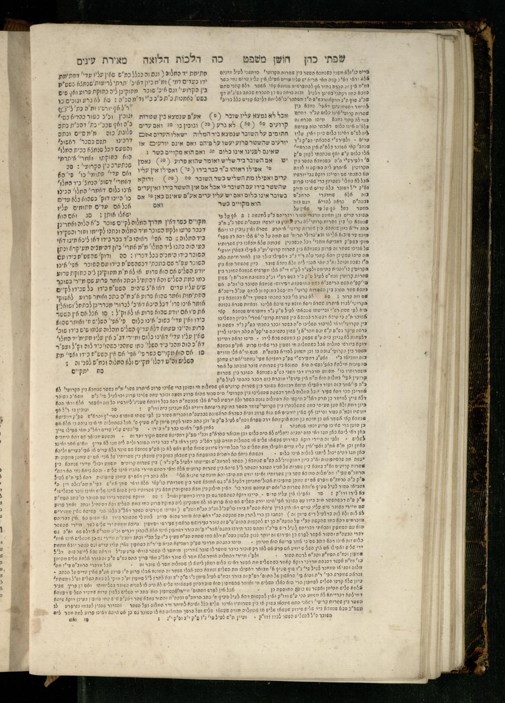 Sefer Torat kohanim : Shulḥan ʿarukh mi-ṭur Ḥoshen mishpaṭ : ʿim ha-beʾurim h.h. Meʾirat ʿenayim ṿe-Śifte kohen ; ... ṿe-hagahotaṿ ... Yosef Ḳaro z.l. ṿe-m.v.h.r.r. Mosheh Iserlez z.l. ...ספר תורת כהנים : שלחן ערוך מטור חשן משפט ; עם הביאורים ה״ה מאירת עינים ושפתי הכן ... והגהותיו מוהר״ר יוסף קארו ז״ל ומוהר״ר משה איסרלז ז״ל ...