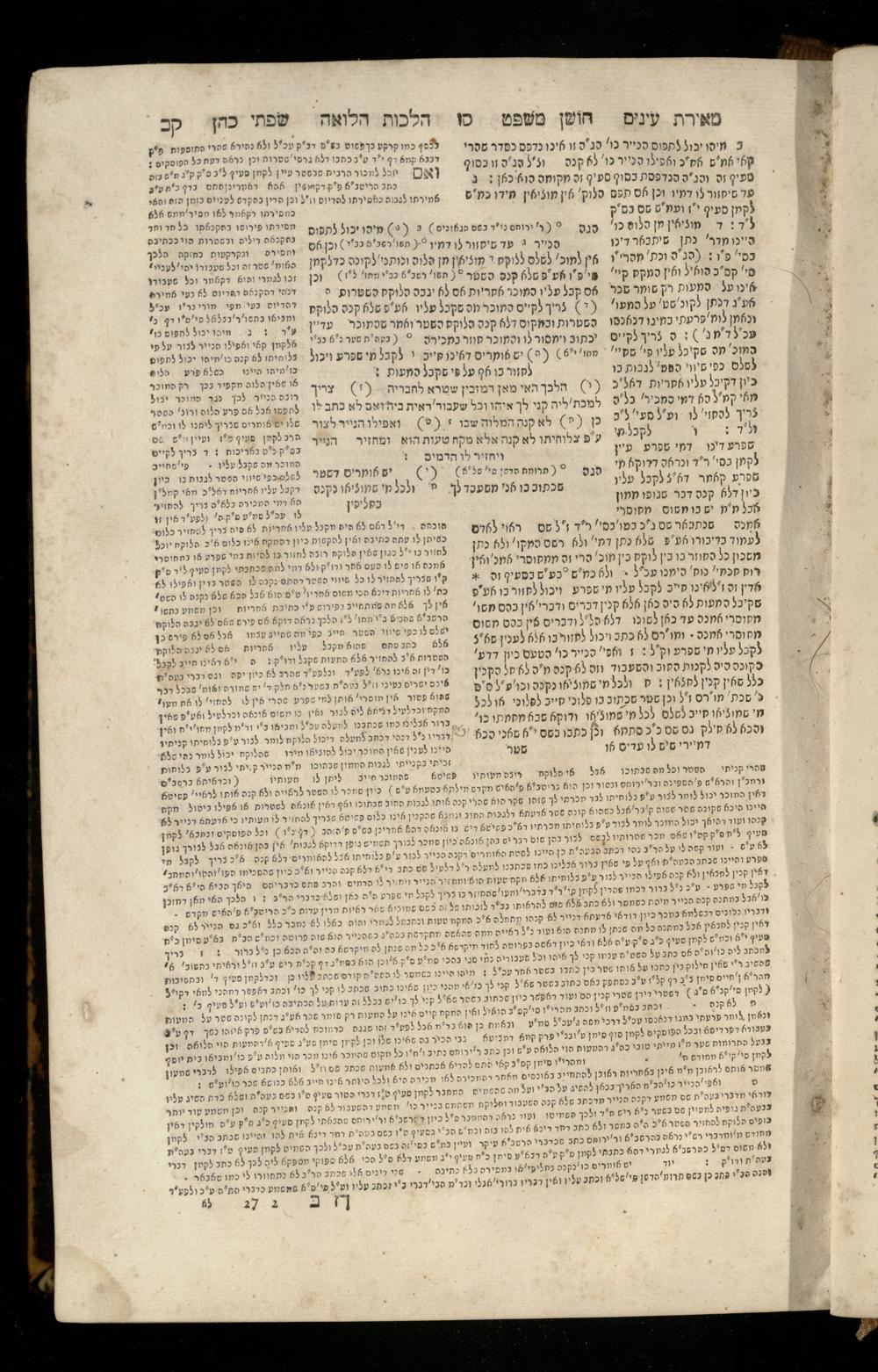 Sefer Torat kohanim : Shulḥan ʿarukh mi-ṭur Ḥoshen mishpaṭ : ʿim ha-beʾurim h.h. Meʾirat ʿenayim ṿe-Śifte kohen ; ... ṿe-hagahotaṿ ... Yosef Ḳaro z.l. ṿe-m.v.h.r.r. Mosheh Iserlez z.l. ...ספר תורת כהנים : שלחן ערוך מטור חשן משפט ; עם הביאורים ה״ה מאירת עינים ושפתי הכן ... והגהותיו מוהר״ר יוסף קארו ז״ל ומוהר״ר משה איסרלז ז״ל ...