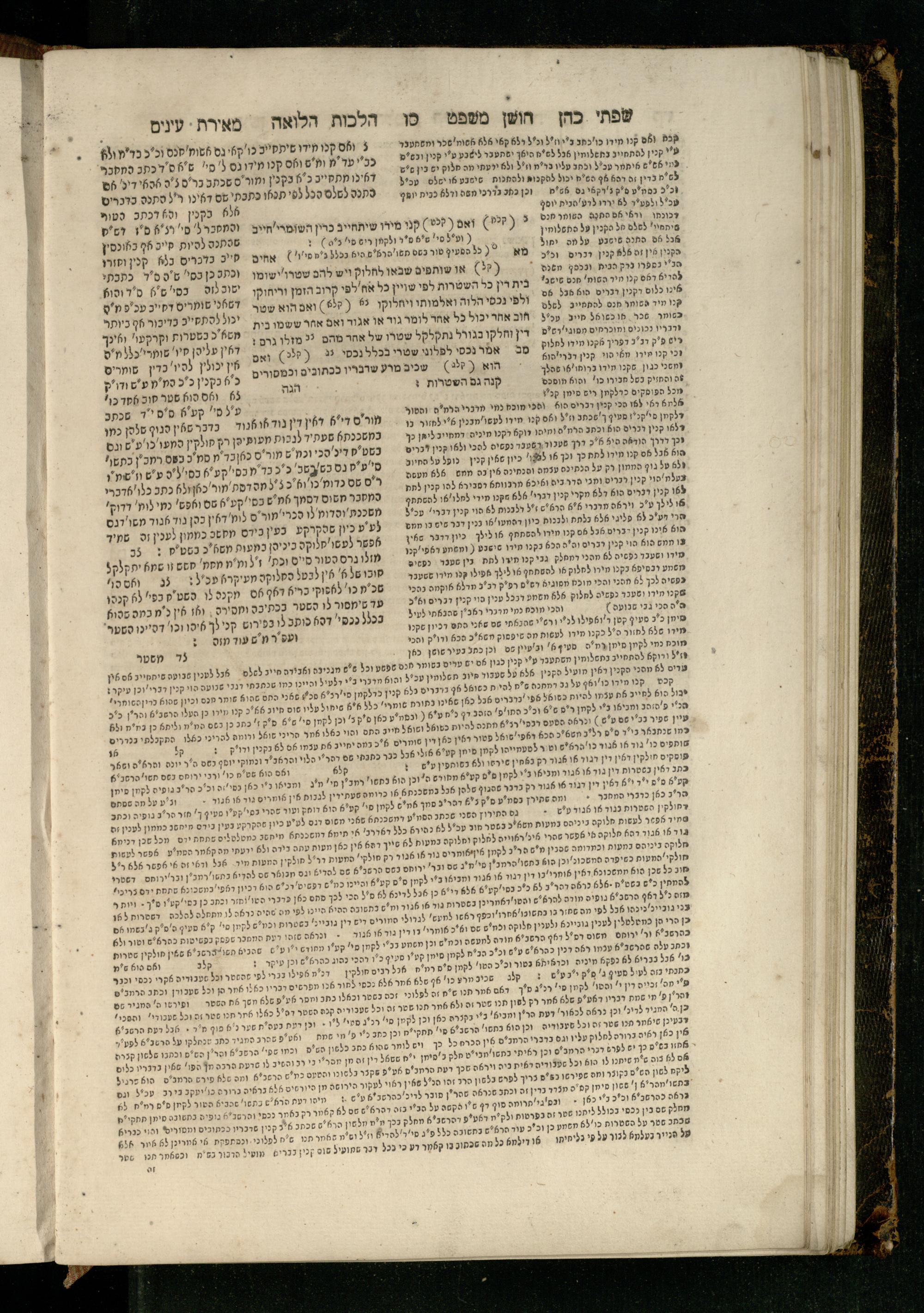 Sefer Torat kohanim : Shulḥan ʿarukh mi-ṭur Ḥoshen mishpaṭ : ʿim ha-beʾurim h.h. Meʾirat ʿenayim ṿe-Śifte kohen ; ... ṿe-hagahotaṿ ... Yosef Ḳaro z.l. ṿe-m.v.h.r.r. Mosheh Iserlez z.l. ...ספר תורת כהנים : שלחן ערוך מטור חשן משפט ; עם הביאורים ה״ה מאירת עינים ושפתי הכן ... והגהותיו מוהר״ר יוסף קארו ז״ל ומוהר״ר משה איסרלז ז״ל ...