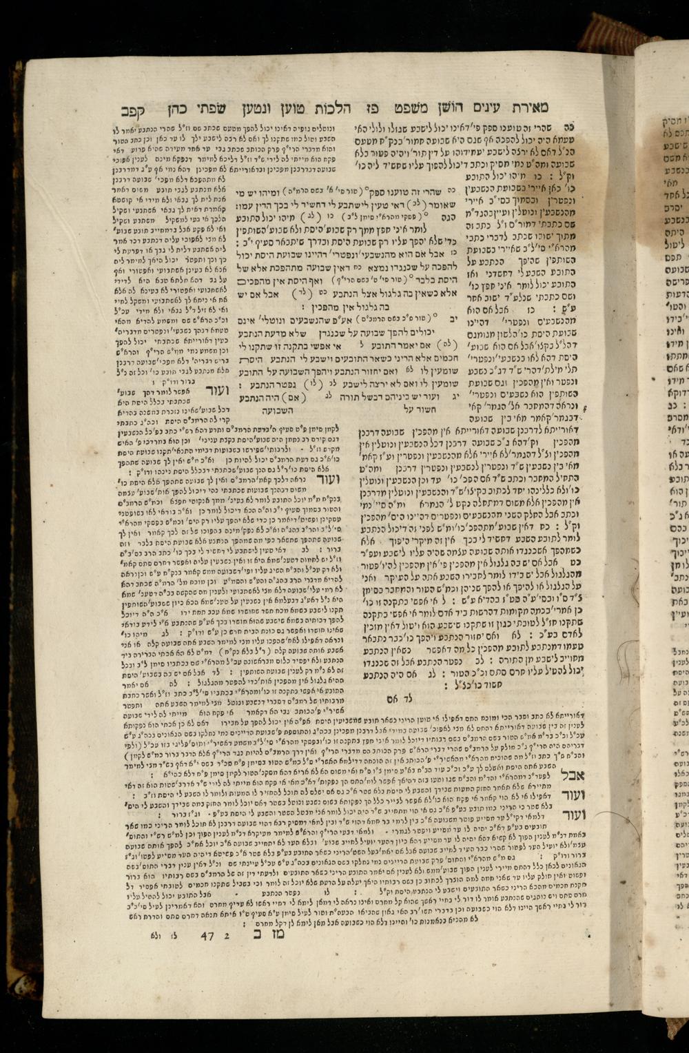 Sefer Torat kohanim : Shulḥan ʿarukh mi-ṭur Ḥoshen mishpaṭ : ʿim ha-beʾurim h.h. Meʾirat ʿenayim ṿe-Śifte kohen ; ... ṿe-hagahotaṿ ... Yosef Ḳaro z.l. ṿe-m.v.h.r.r. Mosheh Iserlez z.l. ...ספר תורת כהנים : שלחן ערוך מטור חשן משפט ; עם הביאורים ה״ה מאירת עינים ושפתי הכן ... והגהותיו מוהר״ר יוסף קארו ז״ל ומוהר״ר משה איסרלז ז״ל ...
