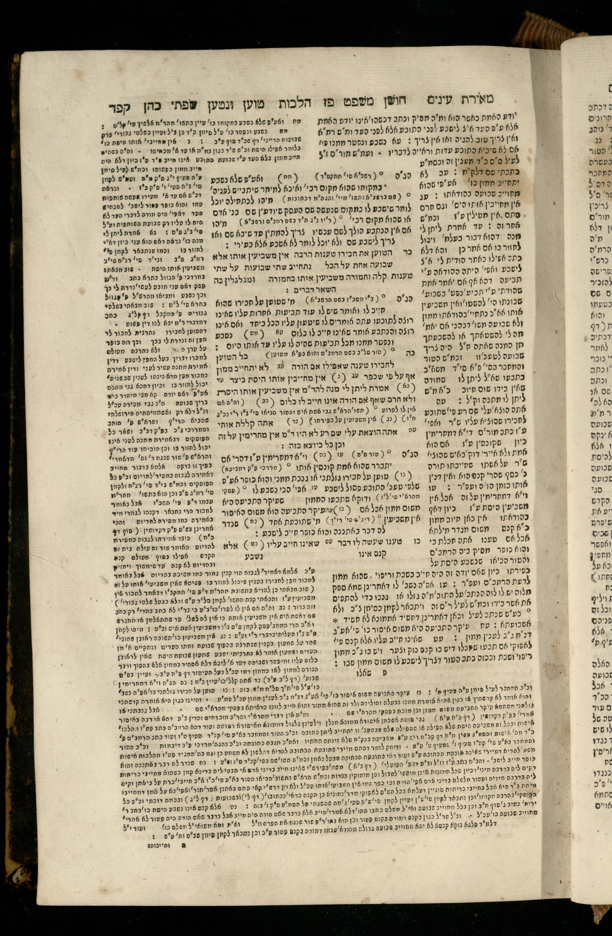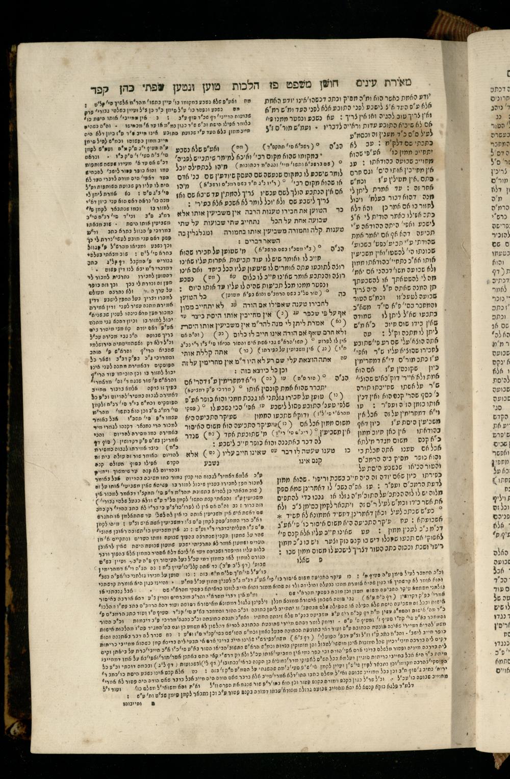 Sefer Torat kohanim : Shulḥan ʿarukh mi-ṭur Ḥoshen mishpaṭ : ʿim ha-beʾurim h.h. Meʾirat ʿenayim ṿe-Śifte kohen ; ... ṿe-hagahotaṿ ... Yosef Ḳaro z.l. ṿe-m.v.h.r.r. Mosheh Iserlez z.l. ...ספר תורת כהנים : שלחן ערוך מטור חשן משפט ; עם הביאורים ה״ה מאירת עינים ושפתי הכן ... והגהותיו מוהר״ר יוסף קארו ז״ל ומוהר״ר משה איסרלז ז״ל ...