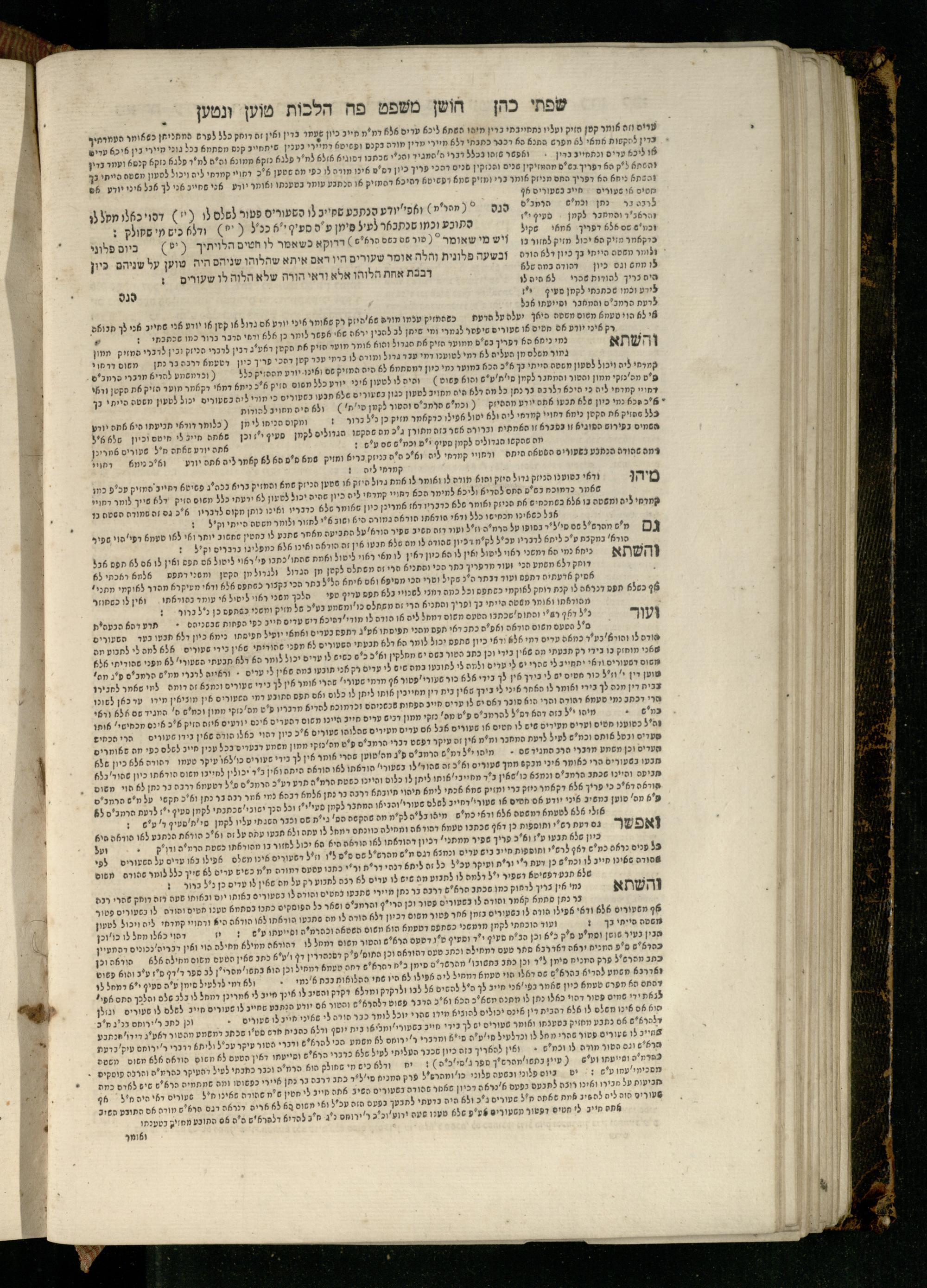 Sefer Torat kohanim : Shulḥan ʿarukh mi-ṭur Ḥoshen mishpaṭ : ʿim ha-beʾurim h.h. Meʾirat ʿenayim ṿe-Śifte kohen ; ... ṿe-hagahotaṿ ... Yosef Ḳaro z.l. ṿe-m.v.h.r.r. Mosheh Iserlez z.l. ...ספר תורת כהנים : שלחן ערוך מטור חשן משפט ; עם הביאורים ה״ה מאירת עינים ושפתי הכן ... והגהותיו מוהר״ר יוסף קארו ז״ל ומוהר״ר משה איסרלז ז״ל ...