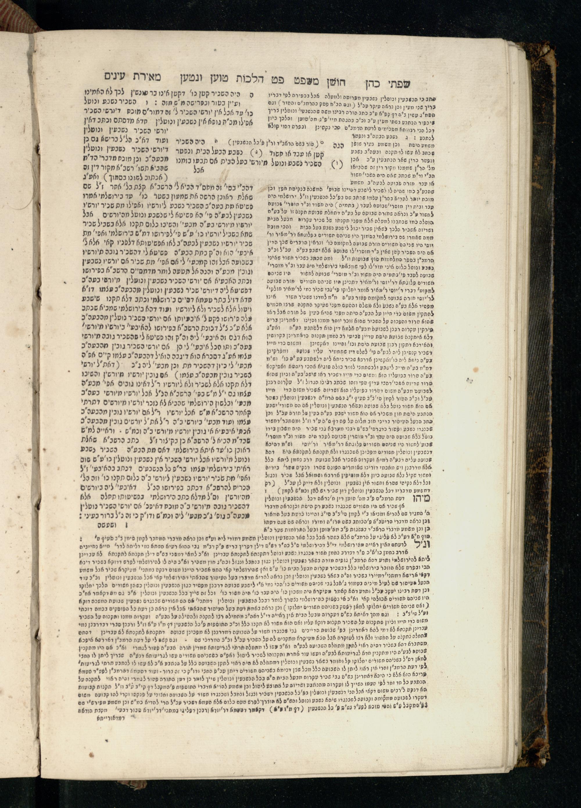 Sefer Torat kohanim : Shulḥan ʿarukh mi-ṭur Ḥoshen mishpaṭ : ʿim ha-beʾurim h.h. Meʾirat ʿenayim ṿe-Śifte kohen ; ... ṿe-hagahotaṿ ... Yosef Ḳaro z.l. ṿe-m.v.h.r.r. Mosheh Iserlez z.l. ...ספר תורת כהנים : שלחן ערוך מטור חשן משפט ; עם הביאורים ה״ה מאירת עינים ושפתי הכן ... והגהותיו מוהר״ר יוסף קארו ז״ל ומוהר״ר משה איסרלז ז״ל ...