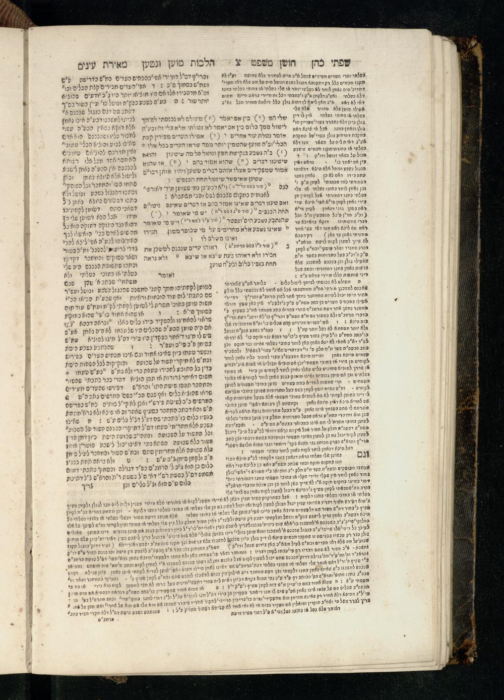 Sefer Torat kohanim : Shulḥan ʿarukh mi-ṭur Ḥoshen mishpaṭ : ʿim ha-beʾurim h.h. Meʾirat ʿenayim ṿe-Śifte kohen ; ... ṿe-hagahotaṿ ... Yosef Ḳaro z.l. ṿe-m.v.h.r.r. Mosheh Iserlez z.l. ...ספר תורת כהנים : שלחן ערוך מטור חשן משפט ; עם הביאורים ה״ה מאירת עינים ושפתי הכן ... והגהותיו מוהר״ר יוסף קארו ז״ל ומוהר״ר משה איסרלז ז״ל ...