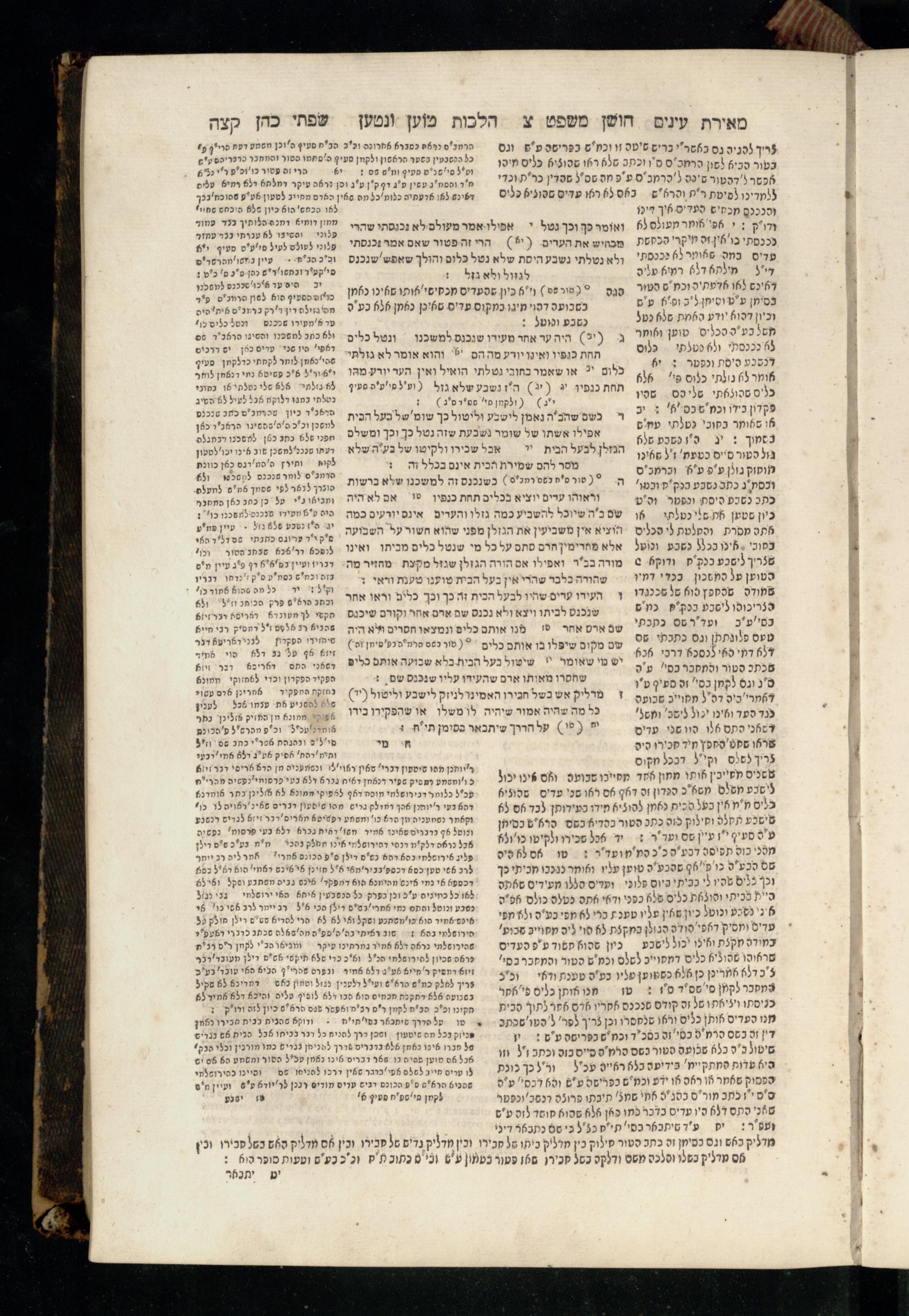Sefer Torat kohanim : Shulḥan ʿarukh mi-ṭur Ḥoshen mishpaṭ : ʿim ha-beʾurim h.h. Meʾirat ʿenayim ṿe-Śifte kohen ; ... ṿe-hagahotaṿ ... Yosef Ḳaro z.l. ṿe-m.v.h.r.r. Mosheh Iserlez z.l. ...ספר תורת כהנים : שלחן ערוך מטור חשן משפט ; עם הביאורים ה״ה מאירת עינים ושפתי הכן ... והגהותיו מוהר״ר יוסף קארו ז״ל ומוהר״ר משה איסרלז ז״ל ...