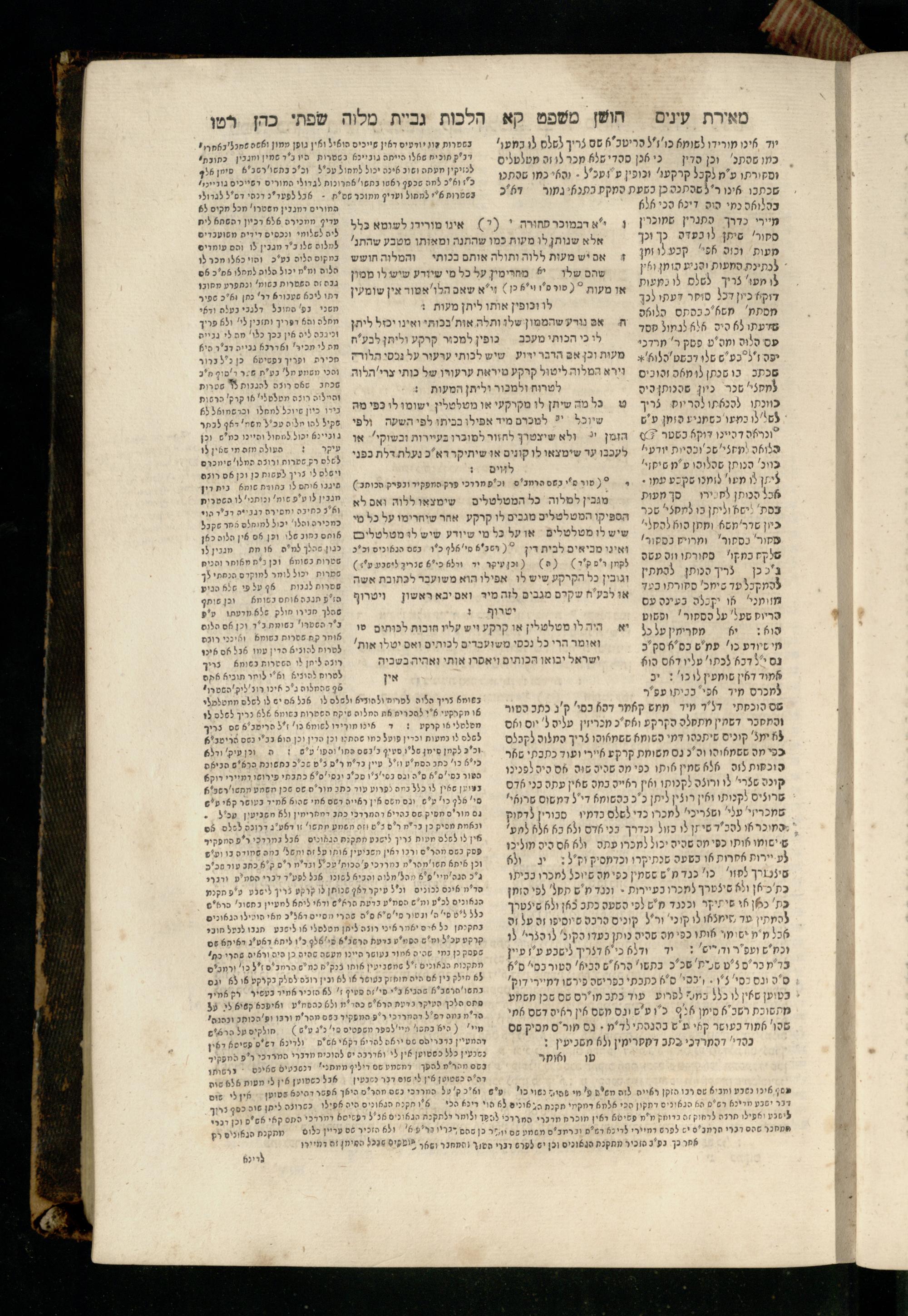 Sefer Torat kohanim : Shulḥan ʿarukh mi-ṭur Ḥoshen mishpaṭ : ʿim ha-beʾurim h.h. Meʾirat ʿenayim ṿe-Śifte kohen ; ... ṿe-hagahotaṿ ... Yosef Ḳaro z.l. ṿe-m.v.h.r.r. Mosheh Iserlez z.l. ...ספר תורת כהנים : שלחן ערוך מטור חשן משפט ; עם הביאורים ה״ה מאירת עינים ושפתי הכן ... והגהותיו מוהר״ר יוסף קארו ז״ל ומוהר״ר משה איסרלז ז״ל ...
