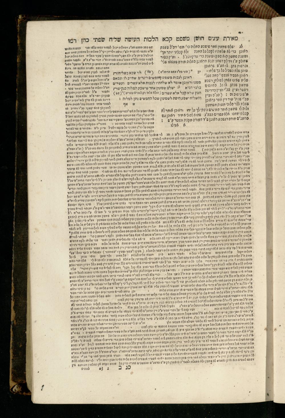 Sefer Torat kohanim : Shulḥan ʿarukh mi-ṭur Ḥoshen mishpaṭ : ʿim ha-beʾurim h.h. Meʾirat ʿenayim ṿe-Śifte kohen ; ... ṿe-hagahotaṿ ... Yosef Ḳaro z.l. ṿe-m.v.h.r.r. Mosheh Iserlez z.l. ...ספר תורת כהנים : שלחן ערוך מטור חשן משפט ; עם הביאורים ה״ה מאירת עינים ושפתי הכן ... והגהותיו מוהר״ר יוסף קארו ז״ל ומוהר״ר משה איסרלז ז״ל ...