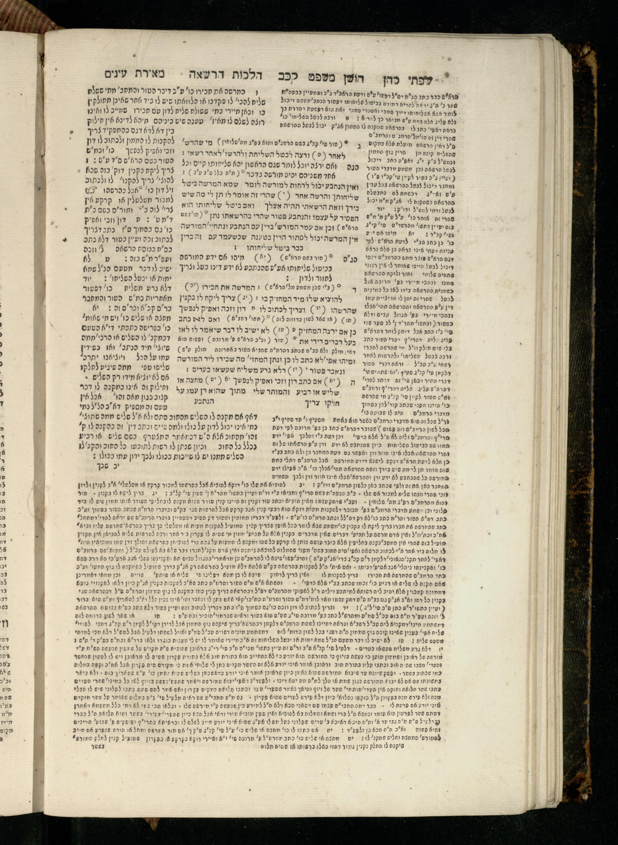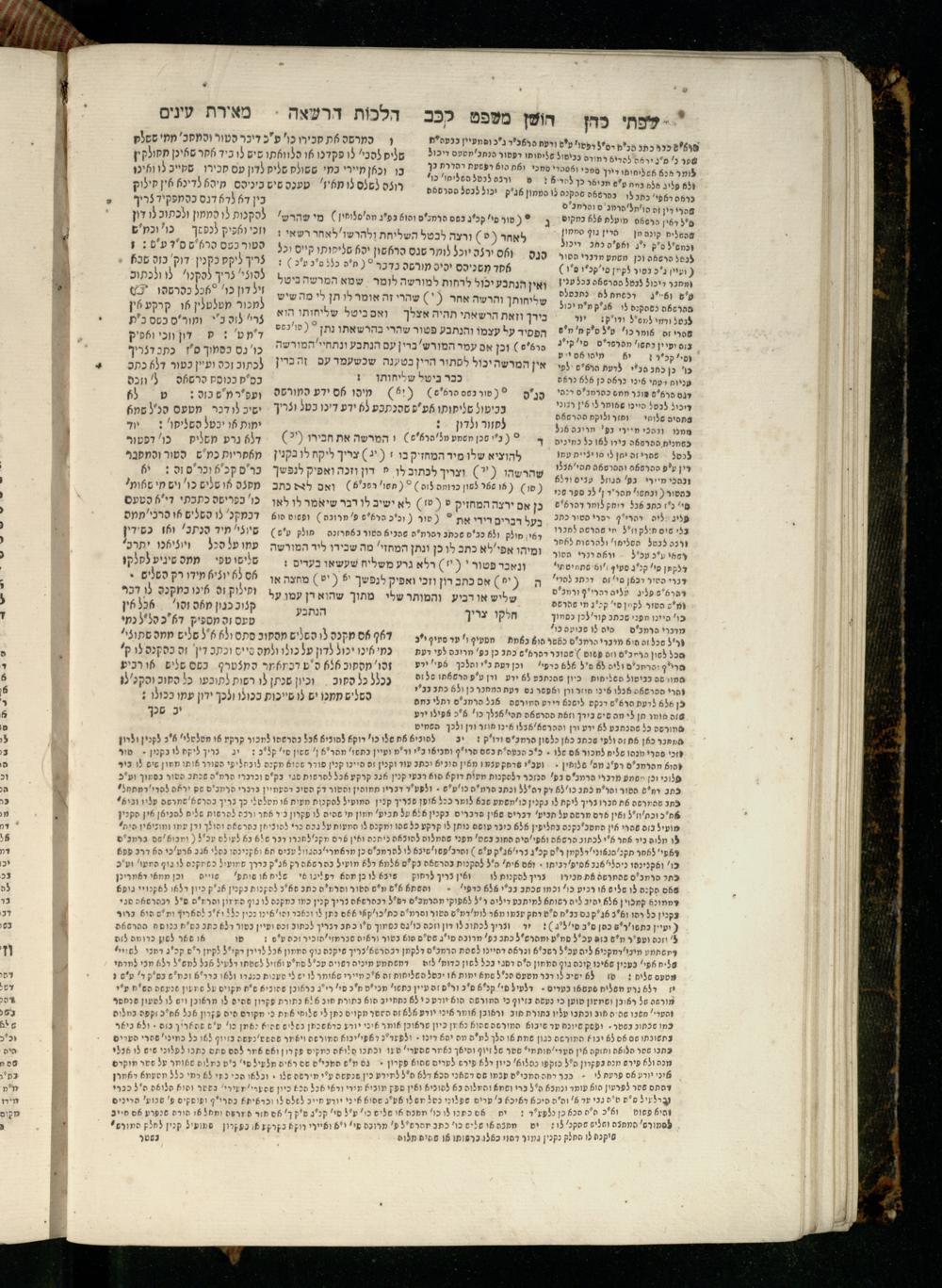 Sefer Torat kohanim : Shulḥan ʿarukh mi-ṭur Ḥoshen mishpaṭ : ʿim ha-beʾurim h.h. Meʾirat ʿenayim ṿe-Śifte kohen ; ... ṿe-hagahotaṿ ... Yosef Ḳaro z.l. ṿe-m.v.h.r.r. Mosheh Iserlez z.l. ...ספר תורת כהנים : שלחן ערוך מטור חשן משפט ; עם הביאורים ה״ה מאירת עינים ושפתי הכן ... והגהותיו מוהר״ר יוסף קארו ז״ל ומוהר״ר משה איסרלז ז״ל ...