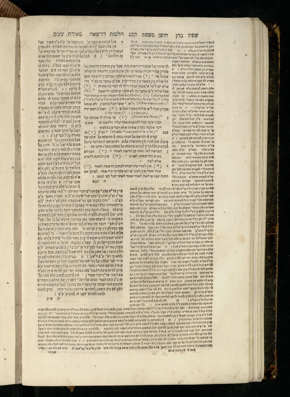 Sefer Torat kohanim : Shulḥan ʿarukh mi-ṭur Ḥoshen mishpaṭ : ʿim ha-beʾurim h.h. Meʾirat ʿenayim ṿe-Śifte kohen ; ... ṿe-hagahotaṿ ... Yosef Ḳaro z.l. ṿe-m.v.h.r.r. Mosheh Iserlez z.l. ...ספר תורת כהנים : שלחן ערוך מטור חשן משפט ; עם הביאורים ה״ה מאירת עינים ושפתי הכן ... והגהותיו מוהר״ר יוסף קארו ז״ל ומוהר״ר משה איסרלז ז״ל ...