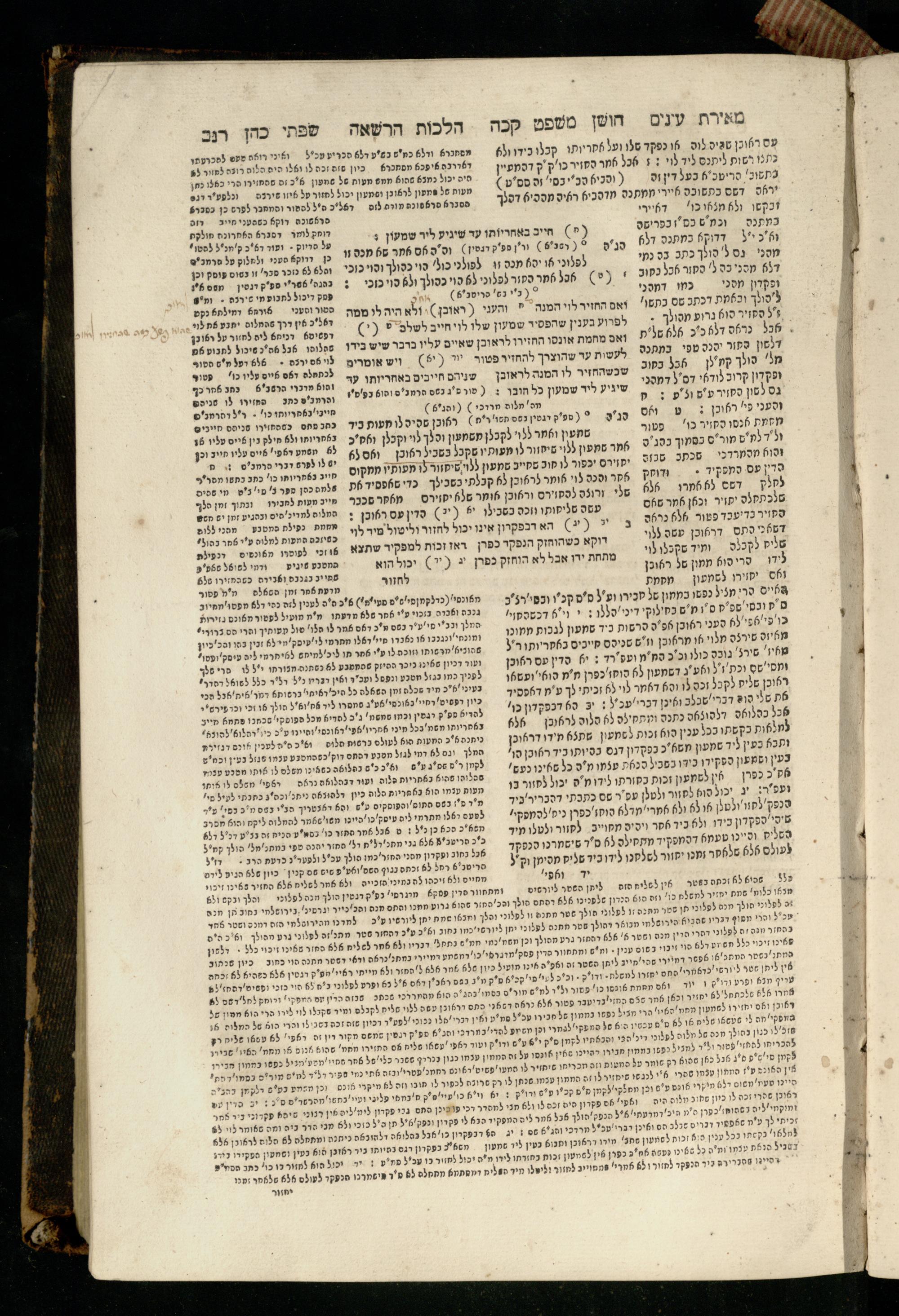 Sefer Torat kohanim : Shulḥan ʿarukh mi-ṭur Ḥoshen mishpaṭ : ʿim ha-beʾurim h.h. Meʾirat ʿenayim ṿe-Śifte kohen ; ... ṿe-hagahotaṿ ... Yosef Ḳaro z.l. ṿe-m.v.h.r.r. Mosheh Iserlez z.l. ...ספר תורת כהנים : שלחן ערוך מטור חשן משפט ; עם הביאורים ה״ה מאירת עינים ושפתי הכן ... והגהותיו מוהר״ר יוסף קארו ז״ל ומוהר״ר משה איסרלז ז״ל ...