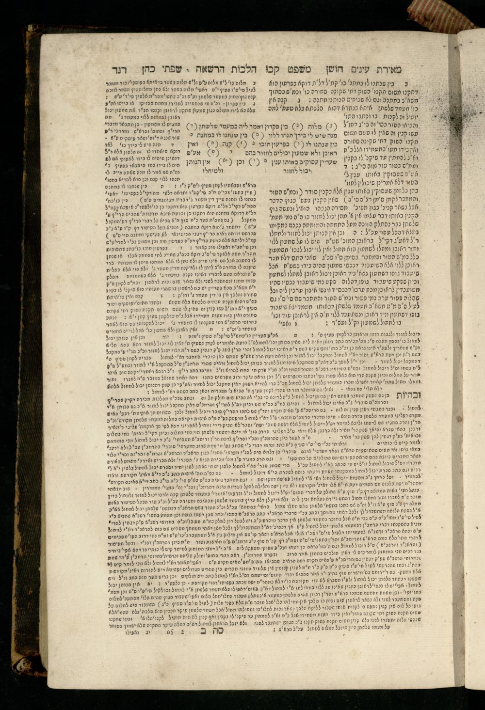 Sefer Torat kohanim : Shulḥan ʿarukh mi-ṭur Ḥoshen mishpaṭ : ʿim ha-beʾurim h.h. Meʾirat ʿenayim ṿe-Śifte kohen ; ... ṿe-hagahotaṿ ... Yosef Ḳaro z.l. ṿe-m.v.h.r.r. Mosheh Iserlez z.l. ...ספר תורת כהנים : שלחן ערוך מטור חשן משפט ; עם הביאורים ה״ה מאירת עינים ושפתי הכן ... והגהותיו מוהר״ר יוסף קארו ז״ל ומוהר״ר משה איסרלז ז״ל ...
