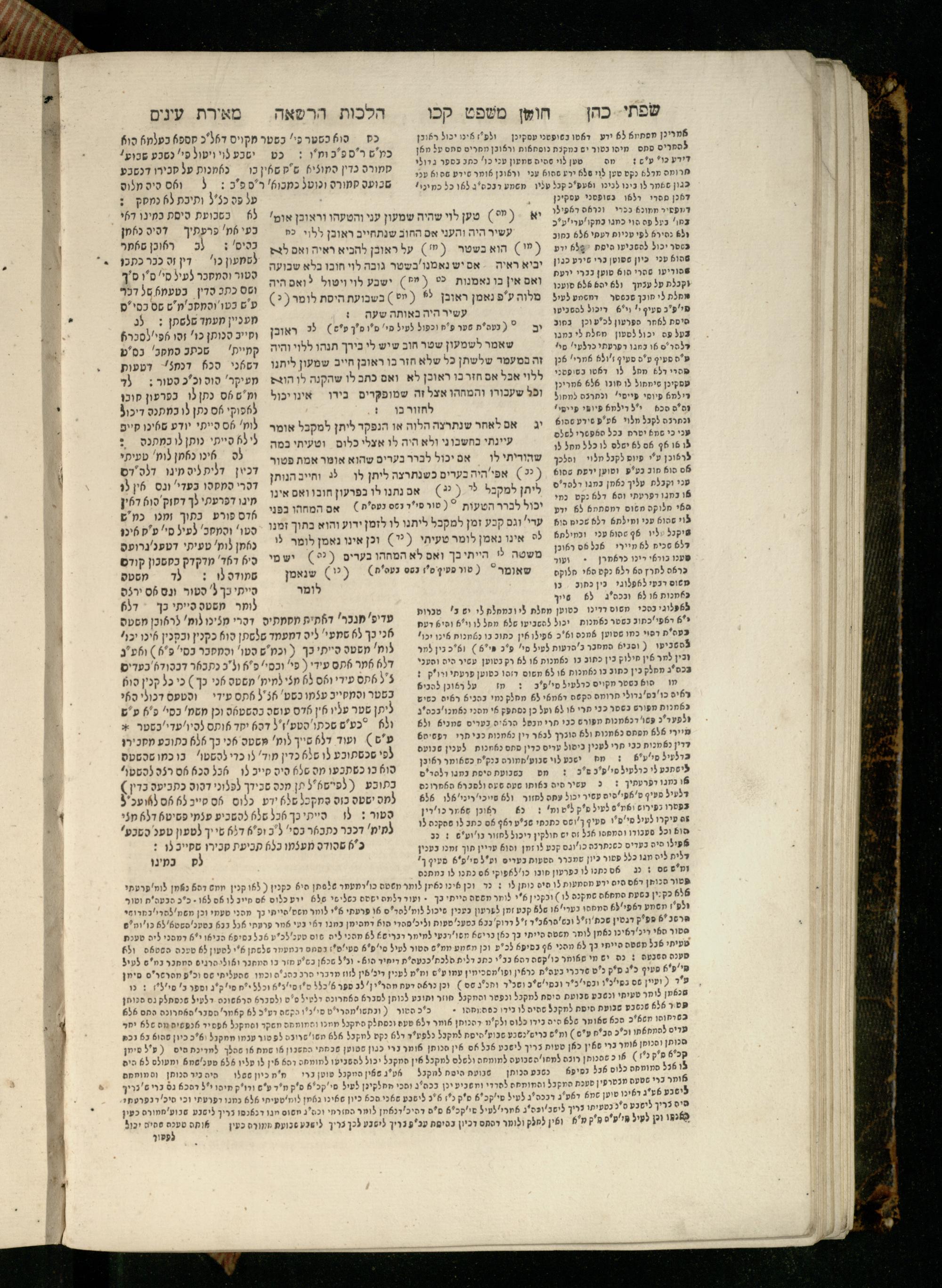 Sefer Torat kohanim : Shulḥan ʿarukh mi-ṭur Ḥoshen mishpaṭ : ʿim ha-beʾurim h.h. Meʾirat ʿenayim ṿe-Śifte kohen ; ... ṿe-hagahotaṿ ... Yosef Ḳaro z.l. ṿe-m.v.h.r.r. Mosheh Iserlez z.l. ...ספר תורת כהנים : שלחן ערוך מטור חשן משפט ; עם הביאורים ה״ה מאירת עינים ושפתי הכן ... והגהותיו מוהר״ר יוסף קארו ז״ל ומוהר״ר משה איסרלז ז״ל ...
