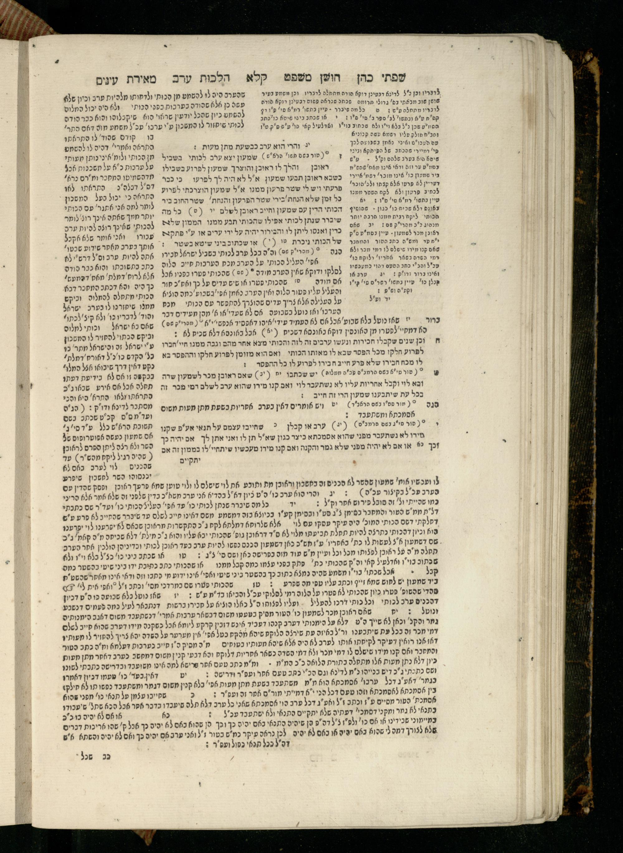 Sefer Torat kohanim : Shulḥan ʿarukh mi-ṭur Ḥoshen mishpaṭ : ʿim ha-beʾurim h.h. Meʾirat ʿenayim ṿe-Śifte kohen ; ... ṿe-hagahotaṿ ... Yosef Ḳaro z.l. ṿe-m.v.h.r.r. Mosheh Iserlez z.l. ...ספר תורת כהנים : שלחן ערוך מטור חשן משפט ; עם הביאורים ה״ה מאירת עינים ושפתי הכן ... והגהותיו מוהר״ר יוסף קארו ז״ל ומוהר״ר משה איסרלז ז״ל ...