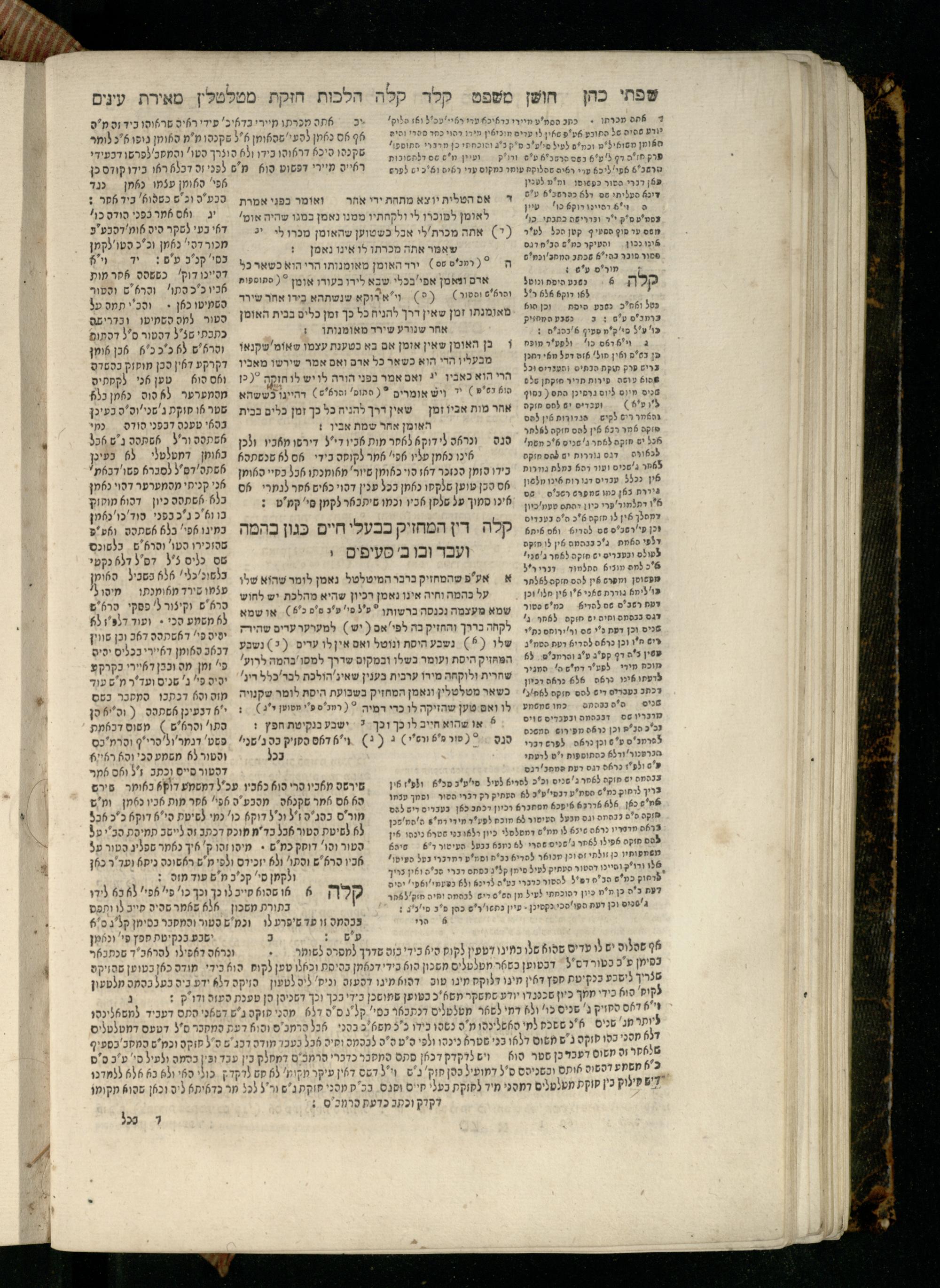 Sefer Torat kohanim : Shulḥan ʿarukh mi-ṭur Ḥoshen mishpaṭ : ʿim ha-beʾurim h.h. Meʾirat ʿenayim ṿe-Śifte kohen ; ... ṿe-hagahotaṿ ... Yosef Ḳaro z.l. ṿe-m.v.h.r.r. Mosheh Iserlez z.l. ...ספר תורת כהנים : שלחן ערוך מטור חשן משפט ; עם הביאורים ה״ה מאירת עינים ושפתי הכן ... והגהותיו מוהר״ר יוסף קארו ז״ל ומוהר״ר משה איסרלז ז״ל ...