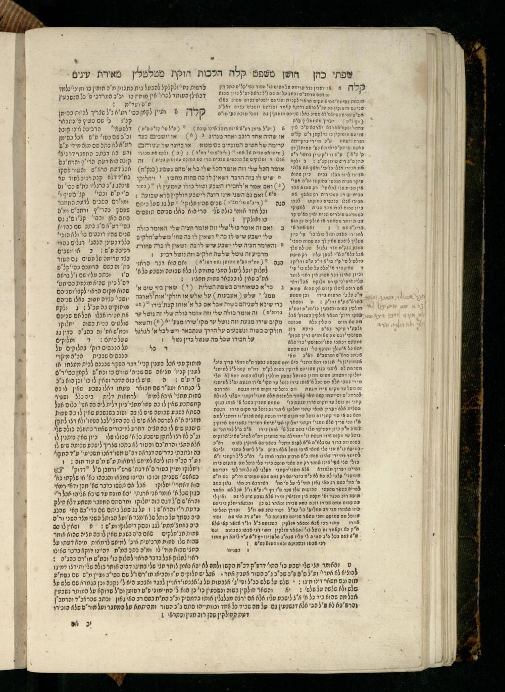 Sefer Torat kohanim : Shulḥan ʿarukh mi-ṭur Ḥoshen mishpaṭ : ʿim ha-beʾurim h.h. Meʾirat ʿenayim ṿe-Śifte kohen ; ... ṿe-hagahotaṿ ... Yosef Ḳaro z.l. ṿe-m.v.h.r.r. Mosheh Iserlez z.l. ...ספר תורת כהנים : שלחן ערוך מטור חשן משפט ; עם הביאורים ה״ה מאירת עינים ושפתי הכן ... והגהותיו מוהר״ר יוסף קארו ז״ל ומוהר״ר משה איסרלז ז״ל ...