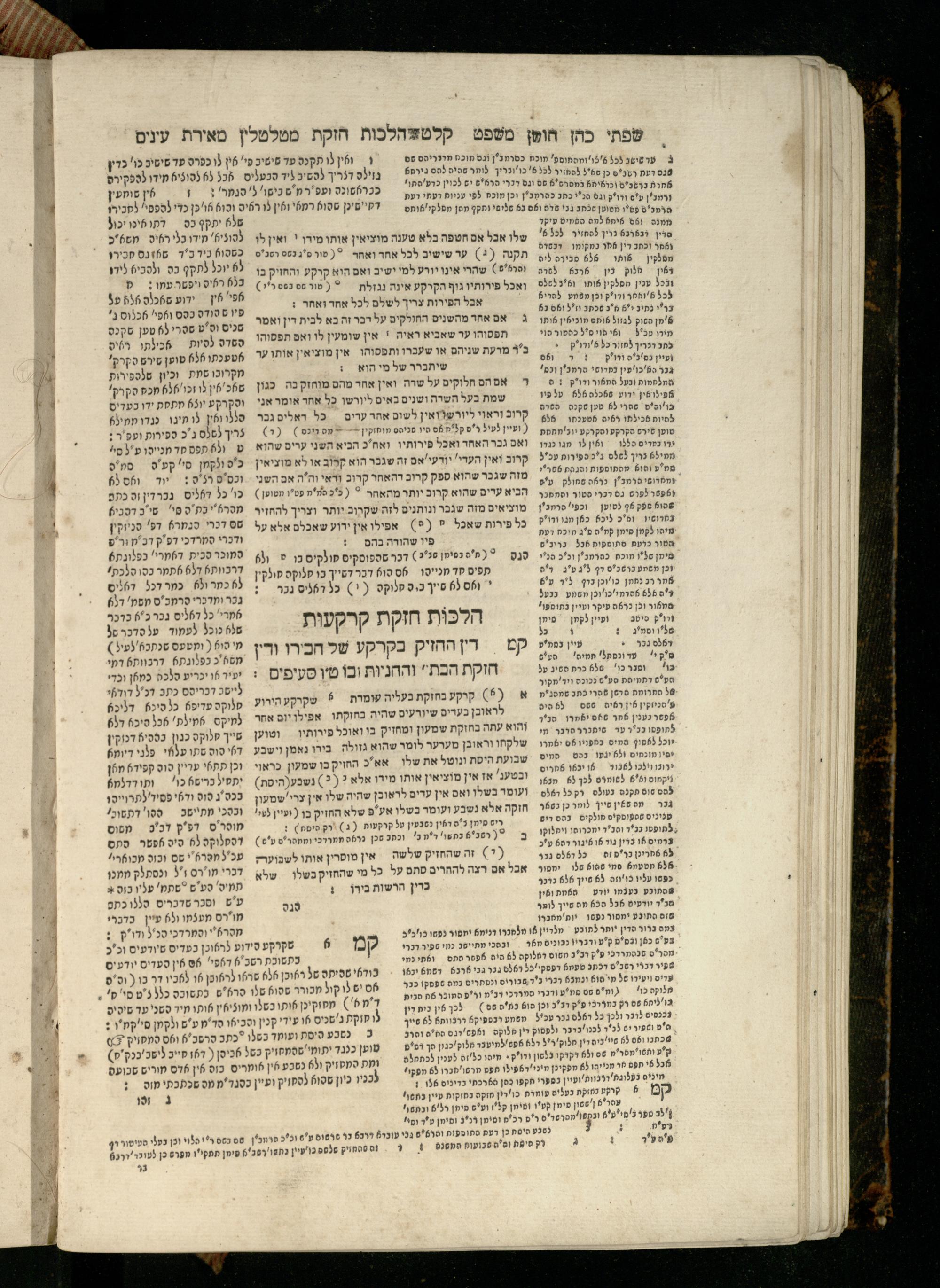 Sefer Torat kohanim : Shulḥan ʿarukh mi-ṭur Ḥoshen mishpaṭ : ʿim ha-beʾurim h.h. Meʾirat ʿenayim ṿe-Śifte kohen ; ... ṿe-hagahotaṿ ... Yosef Ḳaro z.l. ṿe-m.v.h.r.r. Mosheh Iserlez z.l. ...ספר תורת כהנים : שלחן ערוך מטור חשן משפט ; עם הביאורים ה״ה מאירת עינים ושפתי הכן ... והגהותיו מוהר״ר יוסף קארו ז״ל ומוהר״ר משה איסרלז ז״ל ...