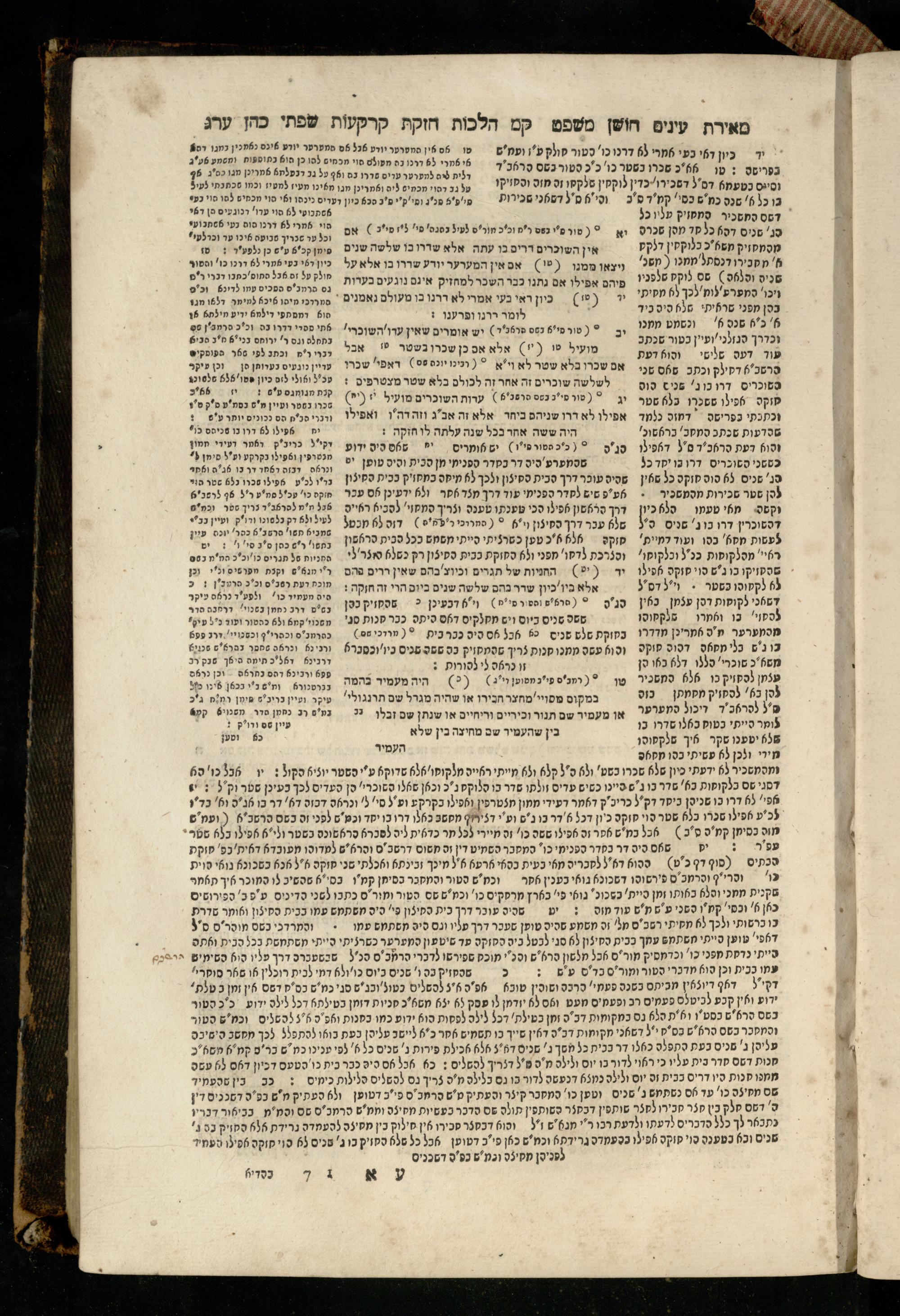 Sefer Torat kohanim : Shulḥan ʿarukh mi-ṭur Ḥoshen mishpaṭ : ʿim ha-beʾurim h.h. Meʾirat ʿenayim ṿe-Śifte kohen ; ... ṿe-hagahotaṿ ... Yosef Ḳaro z.l. ṿe-m.v.h.r.r. Mosheh Iserlez z.l. ...ספר תורת כהנים : שלחן ערוך מטור חשן משפט ; עם הביאורים ה״ה מאירת עינים ושפתי הכן ... והגהותיו מוהר״ר יוסף קארו ז״ל ומוהר״ר משה איסרלז ז״ל ...