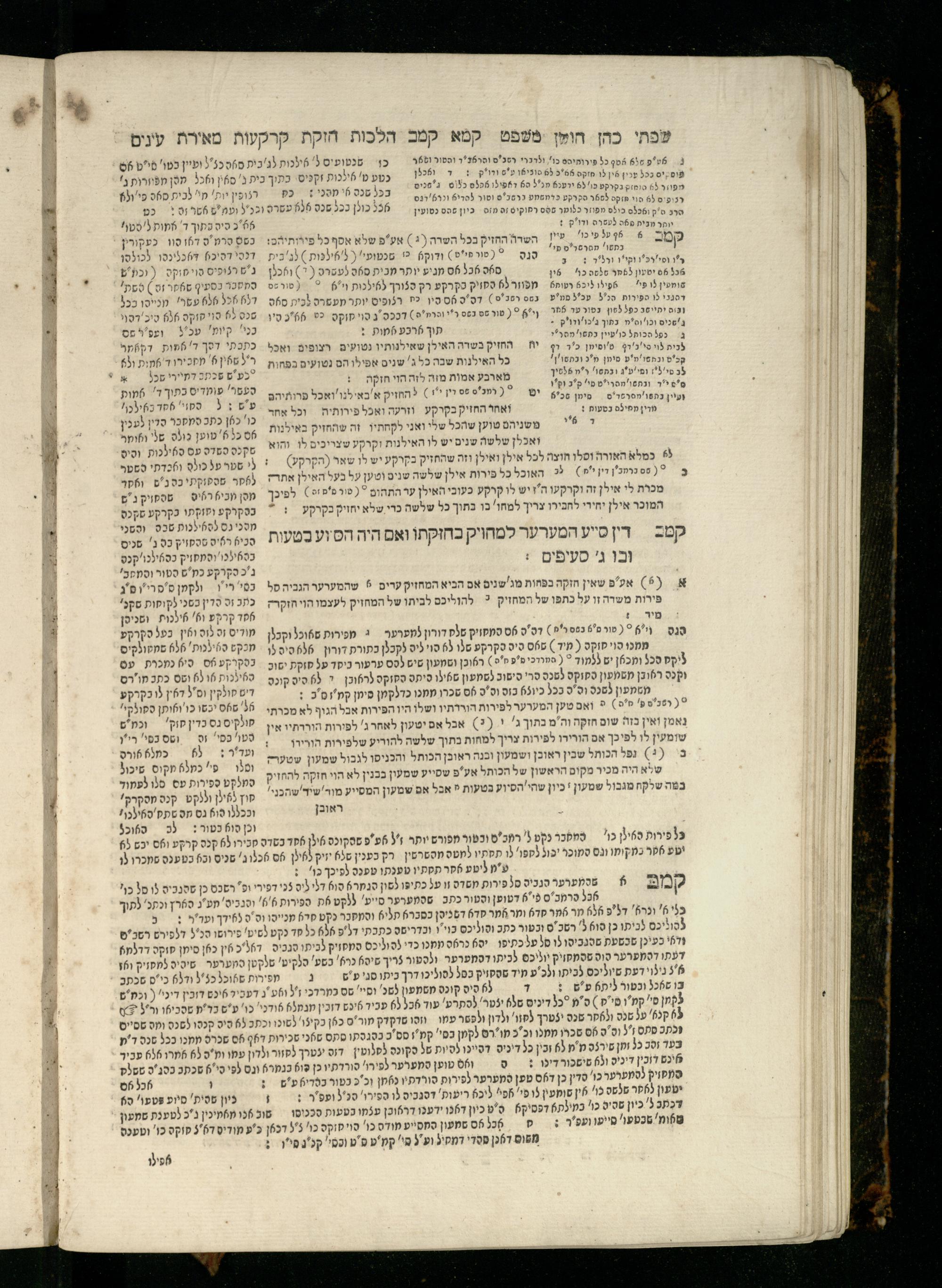 Sefer Torat kohanim : Shulḥan ʿarukh mi-ṭur Ḥoshen mishpaṭ : ʿim ha-beʾurim h.h. Meʾirat ʿenayim ṿe-Śifte kohen ; ... ṿe-hagahotaṿ ... Yosef Ḳaro z.l. ṿe-m.v.h.r.r. Mosheh Iserlez z.l. ...ספר תורת כהנים : שלחן ערוך מטור חשן משפט ; עם הביאורים ה״ה מאירת עינים ושפתי הכן ... והגהותיו מוהר״ר יוסף קארו ז״ל ומוהר״ר משה איסרלז ז״ל ...