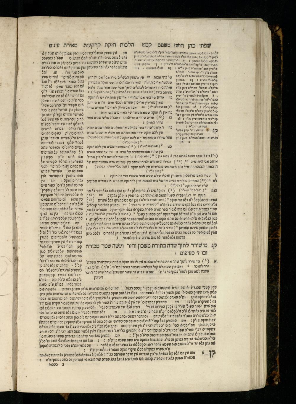 Sefer Torat kohanim : Shulḥan ʿarukh mi-ṭur Ḥoshen mishpaṭ : ʿim ha-beʾurim h.h. Meʾirat ʿenayim ṿe-Śifte kohen ; ... ṿe-hagahotaṿ ... Yosef Ḳaro z.l. ṿe-m.v.h.r.r. Mosheh Iserlez z.l. ...ספר תורת כהנים : שלחן ערוך מטור חשן משפט ; עם הביאורים ה״ה מאירת עינים ושפתי הכן ... והגהותיו מוהר״ר יוסף קארו ז״ל ומוהר״ר משה איסרלז ז״ל ...