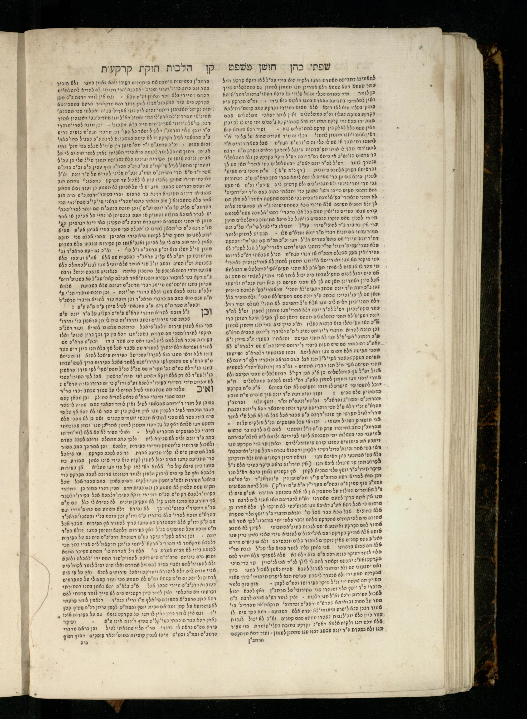 Sefer Torat kohanim : Shulḥan ʿarukh mi-ṭur Ḥoshen mishpaṭ : ʿim ha-beʾurim h.h. Meʾirat ʿenayim ṿe-Śifte kohen ; ... ṿe-hagahotaṿ ... Yosef Ḳaro z.l. ṿe-m.v.h.r.r. Mosheh Iserlez z.l. ...ספר תורת כהנים : שלחן ערוך מטור חשן משפט ; עם הביאורים ה״ה מאירת עינים ושפתי הכן ... והגהותיו מוהר״ר יוסף קארו ז״ל ומוהר״ר משה איסרלז ז״ל ...