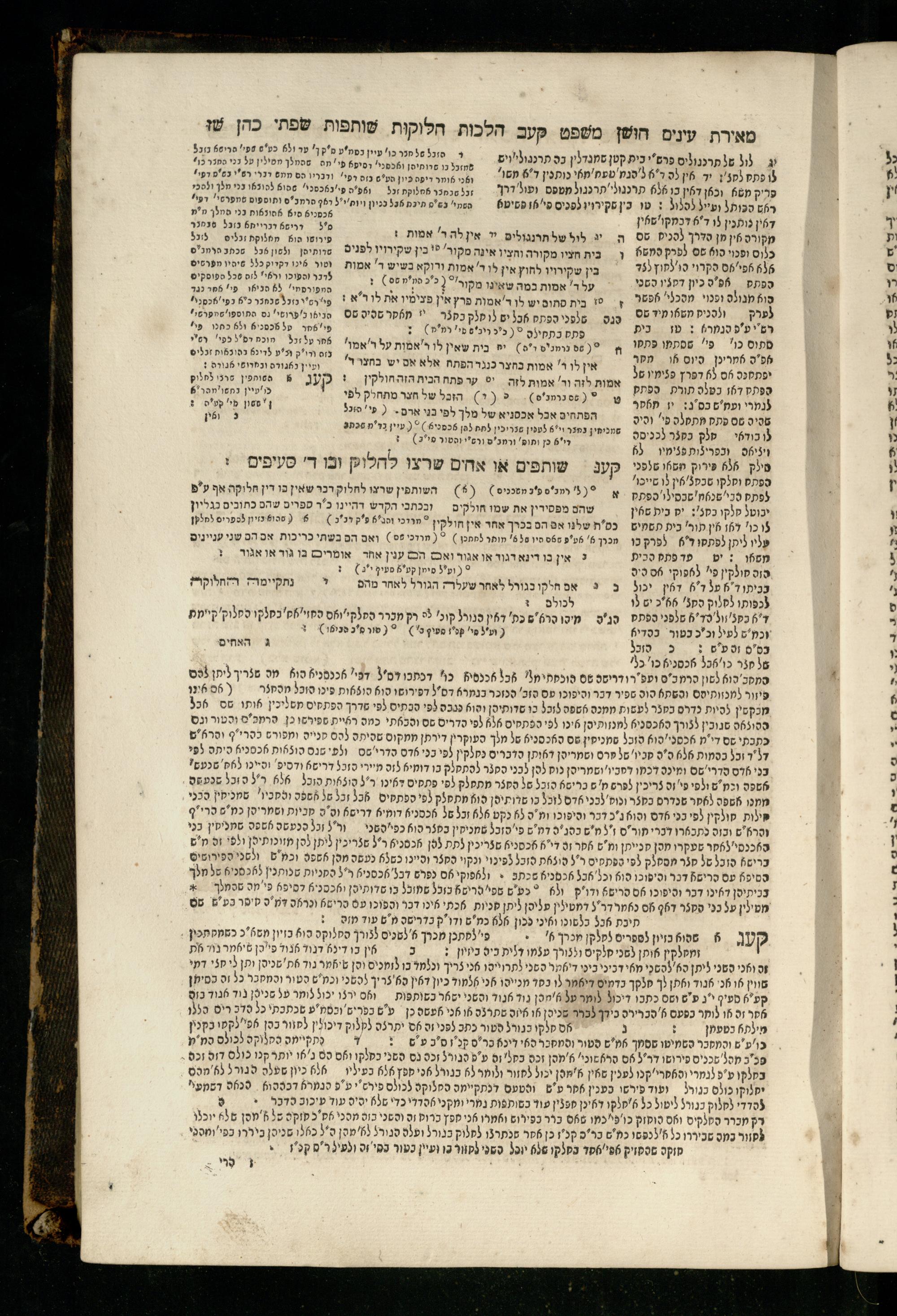 Sefer Torat kohanim : Shulḥan ʿarukh mi-ṭur Ḥoshen mishpaṭ : ʿim ha-beʾurim h.h. Meʾirat ʿenayim ṿe-Śifte kohen ; ... ṿe-hagahotaṿ ... Yosef Ḳaro z.l. ṿe-m.v.h.r.r. Mosheh Iserlez z.l. ...ספר תורת כהנים : שלחן ערוך מטור חשן משפט ; עם הביאורים ה״ה מאירת עינים ושפתי הכן ... והגהותיו מוהר״ר יוסף קארו ז״ל ומוהר״ר משה איסרלז ז״ל ...