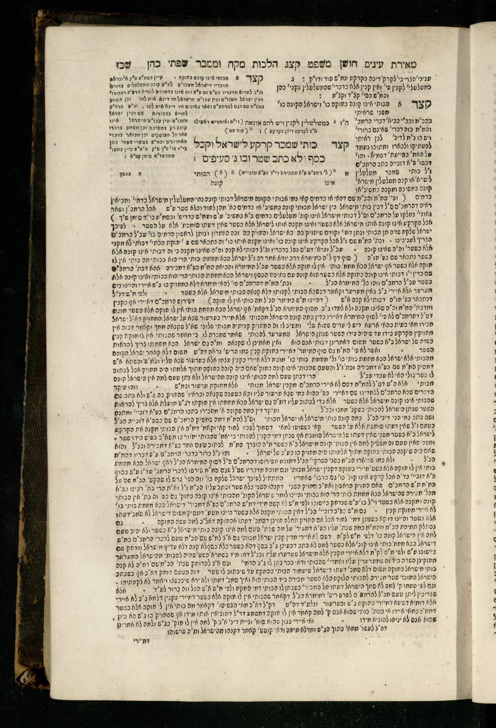 Sefer Torat kohanim : Shulḥan ʿarukh mi-ṭur Ḥoshen mishpaṭ : ʿim ha-beʾurim h.h. Meʾirat ʿenayim ṿe-Śifte kohen ; ... ṿe-hagahotaṿ ... Yosef Ḳaro z.l. ṿe-m.v.h.r.r. Mosheh Iserlez z.l. ...ספר תורת כהנים : שלחן ערוך מטור חשן משפט ; עם הביאורים ה״ה מאירת עינים ושפתי הכן ... והגהותיו מוהר״ר יוסף קארו ז״ל ומוהר״ר משה איסרלז ז״ל ...