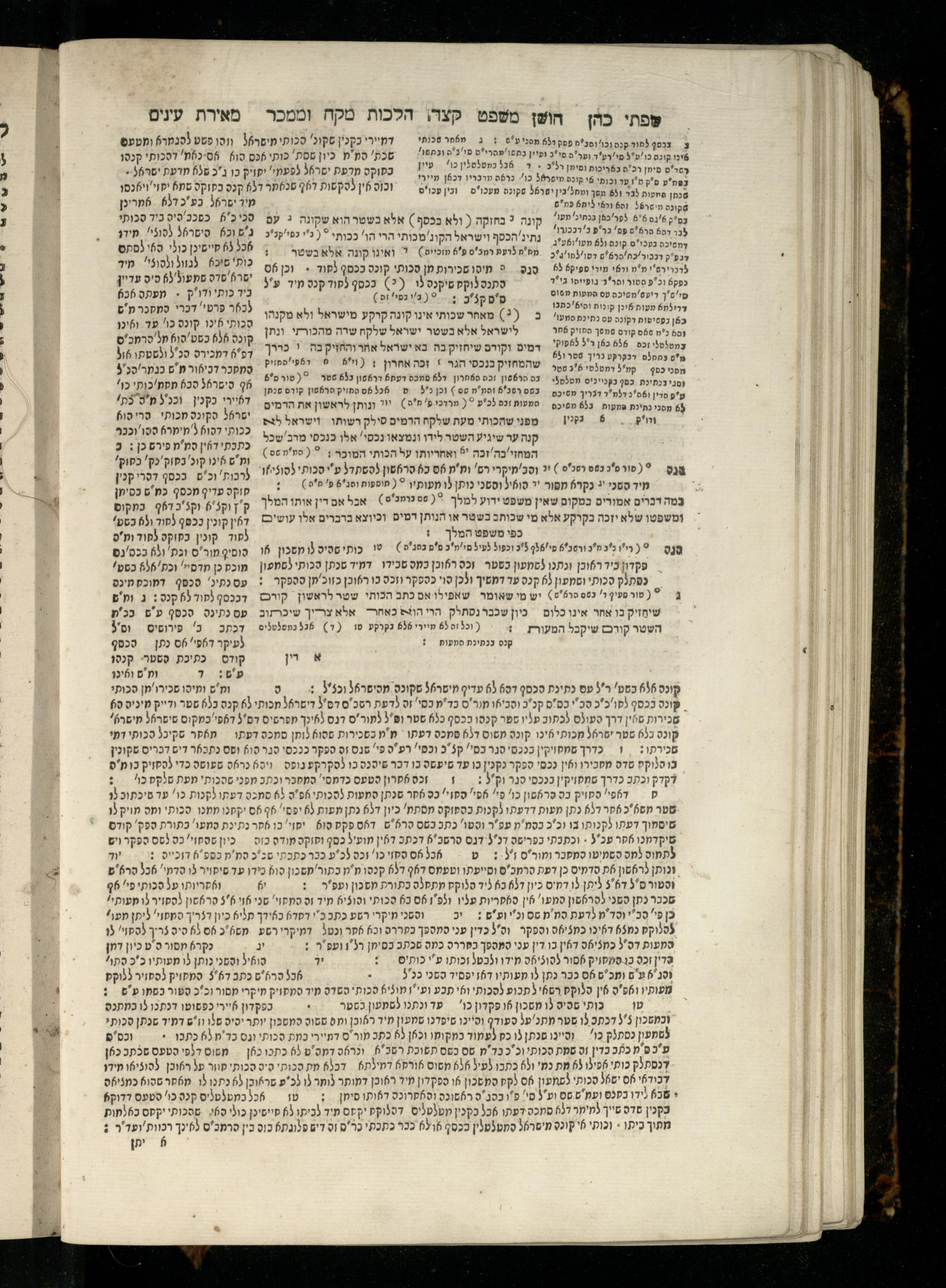 Sefer Torat kohanim : Shulḥan ʿarukh mi-ṭur Ḥoshen mishpaṭ : ʿim ha-beʾurim h.h. Meʾirat ʿenayim ṿe-Śifte kohen ; ... ṿe-hagahotaṿ ... Yosef Ḳaro z.l. ṿe-m.v.h.r.r. Mosheh Iserlez z.l. ...ספר תורת כהנים : שלחן ערוך מטור חשן משפט ; עם הביאורים ה״ה מאירת עינים ושפתי הכן ... והגהותיו מוהר״ר יוסף קארו ז״ל ומוהר״ר משה איסרלז ז״ל ...